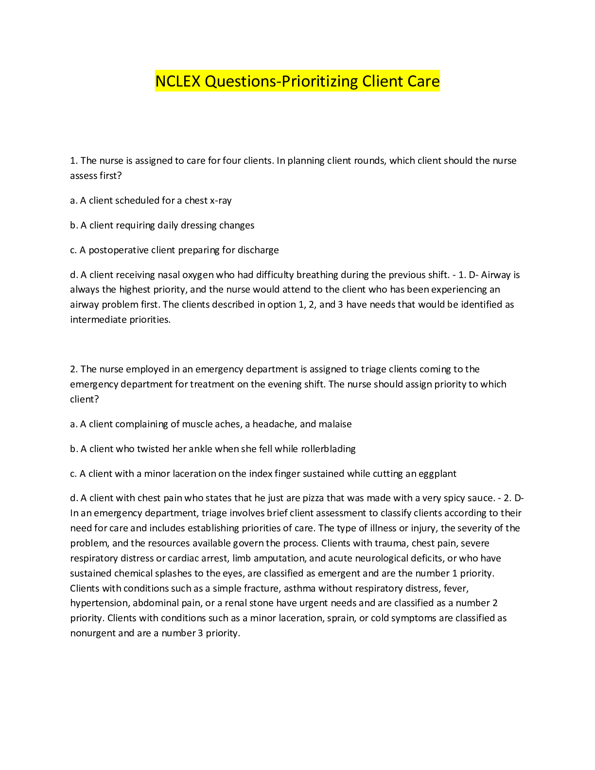*NURSING > NCLEX > NCLEX Practice Questions with rationales (with complete solution)