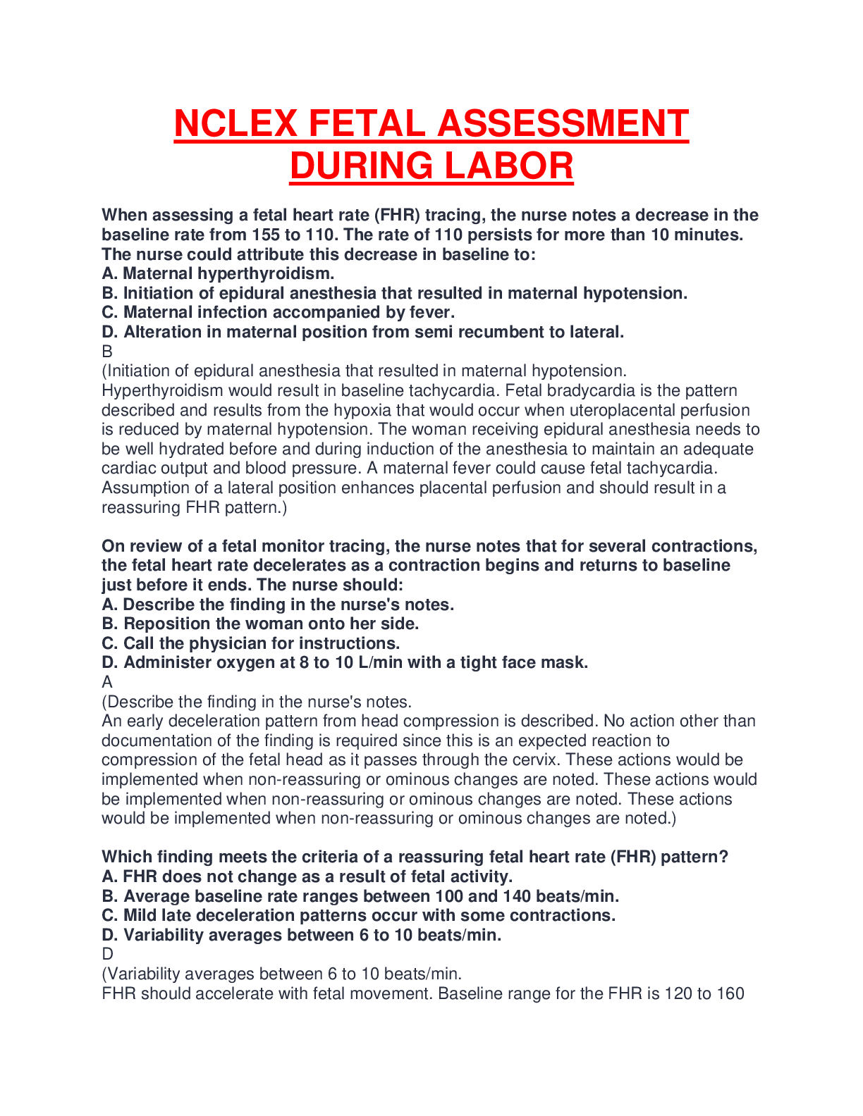 *NURSING > NCLEX > NCLEX FETAL ASSESSMENT DURING LABOR 2022/2023 NEW UPDATED SOLUTION GUARANTEED VERIFIED AND RATED A+.