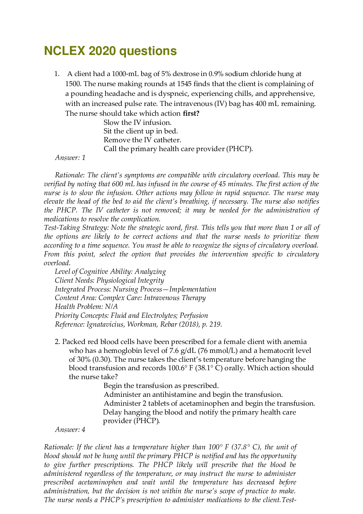 *NURSING > NCLEX > Exam (elaborations) NCLEX Advanced (NURS 4390) 2021 LATEST