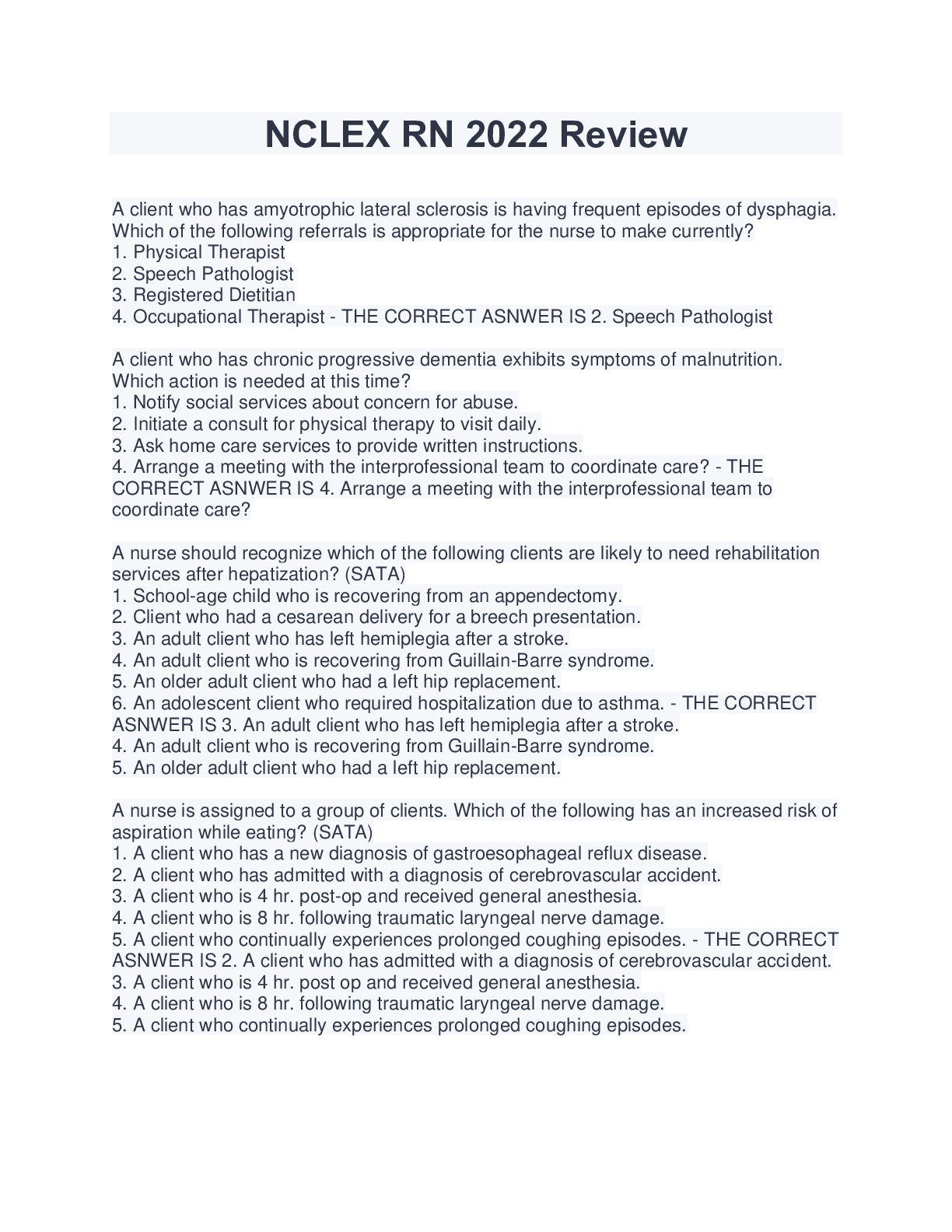 NCLEX-RN > NCLEX > NCLEX REVIEW EXAM QUESTIONS AND ANSWERS WITH RATIONALES BEST EXAM SOLUTIONS.