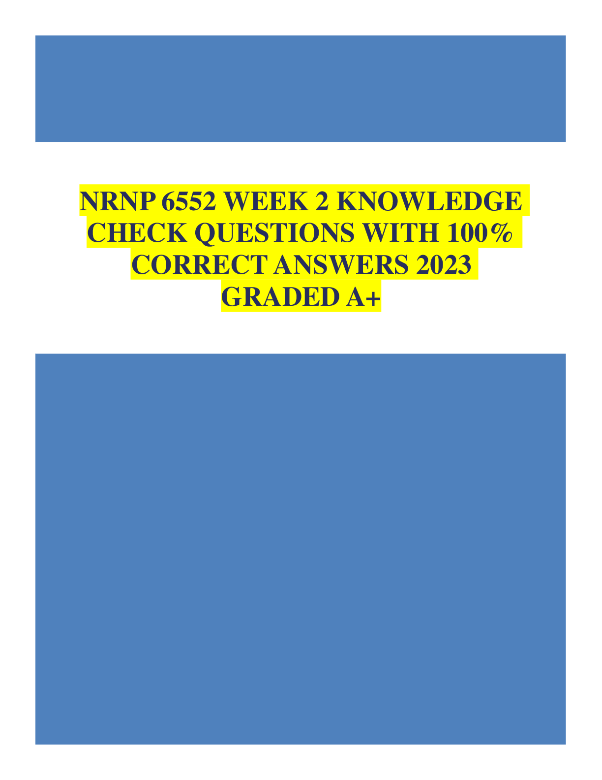 *NURSING > QUESTIONS & ANSWERS > NRNP 6552 WEEK 2 KNOWLEDGE CHECK QUESTIONS WITH 100% CORRECT ANSWERS