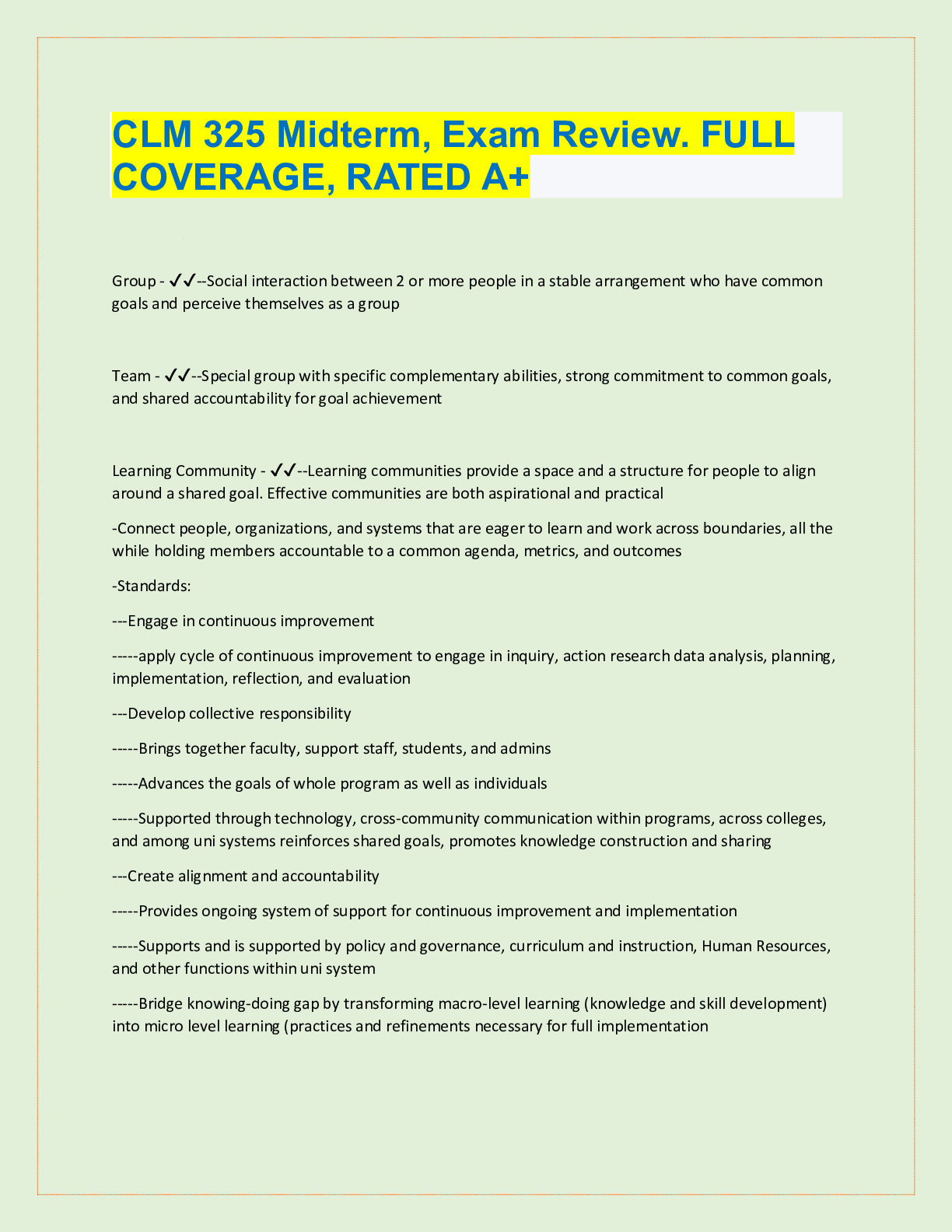 Management > QUESTIONS & ANSWERS > CLM 325 Midterm, Exam Review. FULL COVERAGE, RATED A+