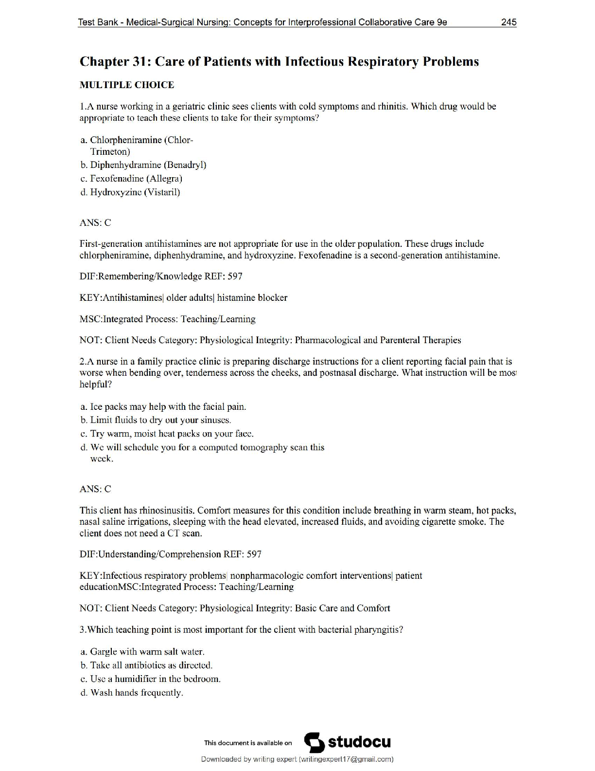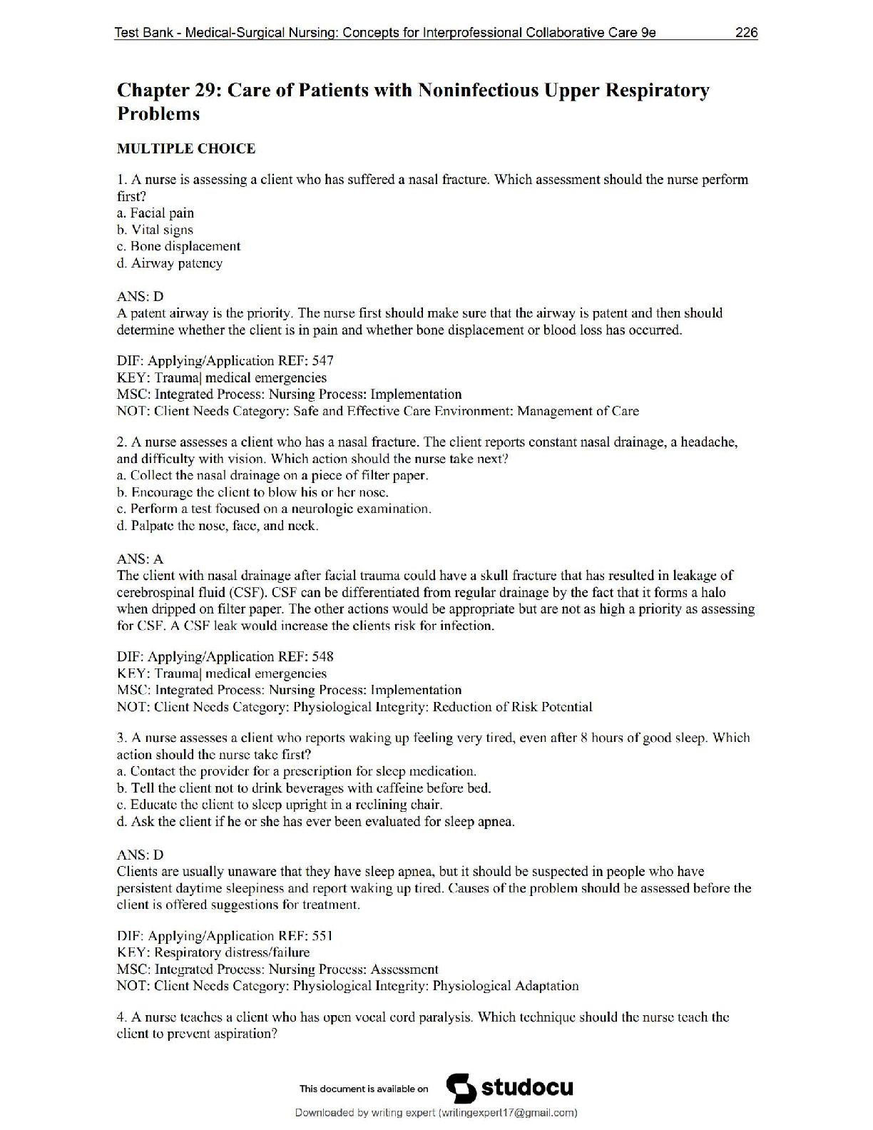 *NURSING > QUESTIONS & ANSWERS > NUR 242 Galen College – Chapter 29: Noninfectious Upper Respiratory Problems | NEW 2025 Version – Score 100%