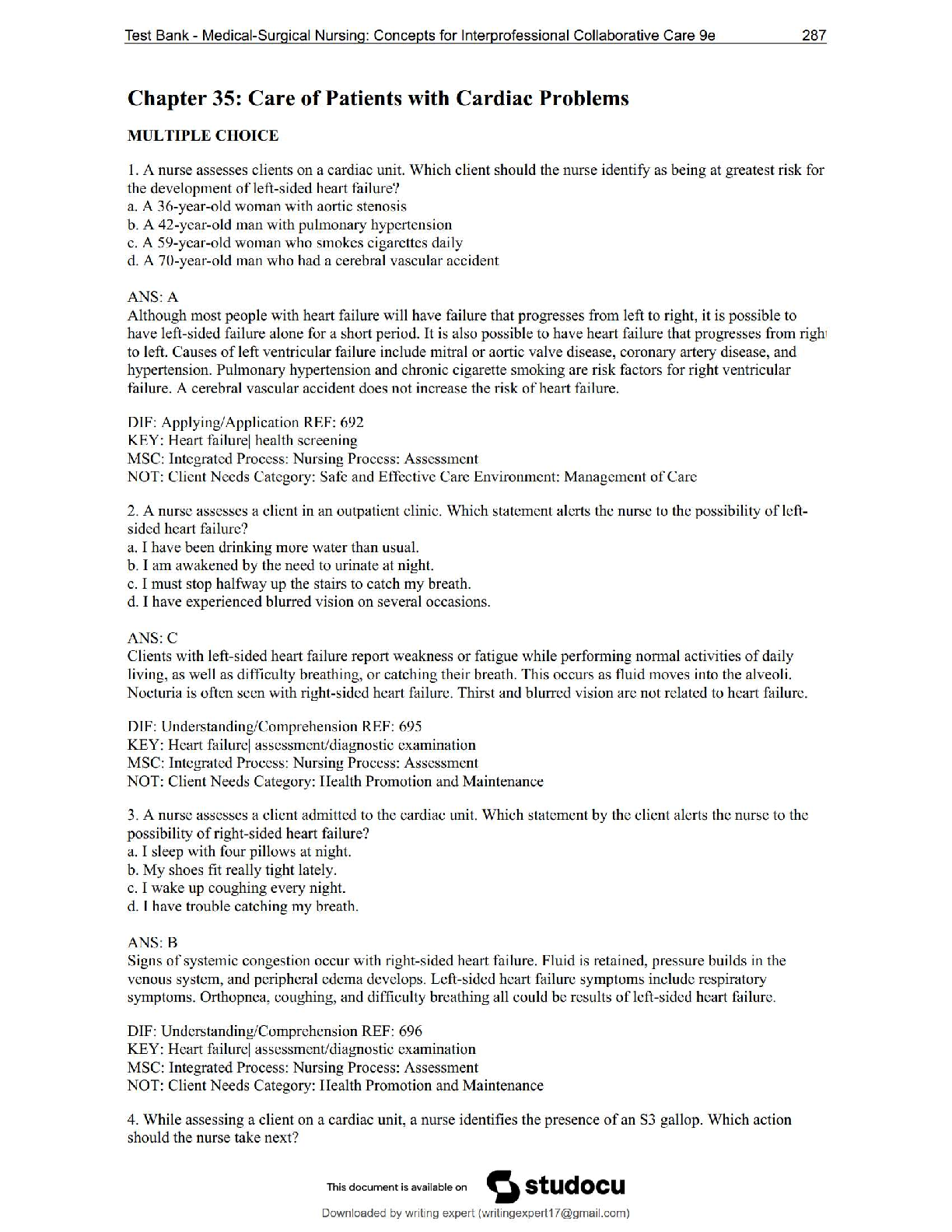 *NURSING > QUESTIONS & ANSWERS > NUR 242 Galen College – Chapter 35: Care of Patients with Cardiac Problems | NEW 2025 Version – Score 100%