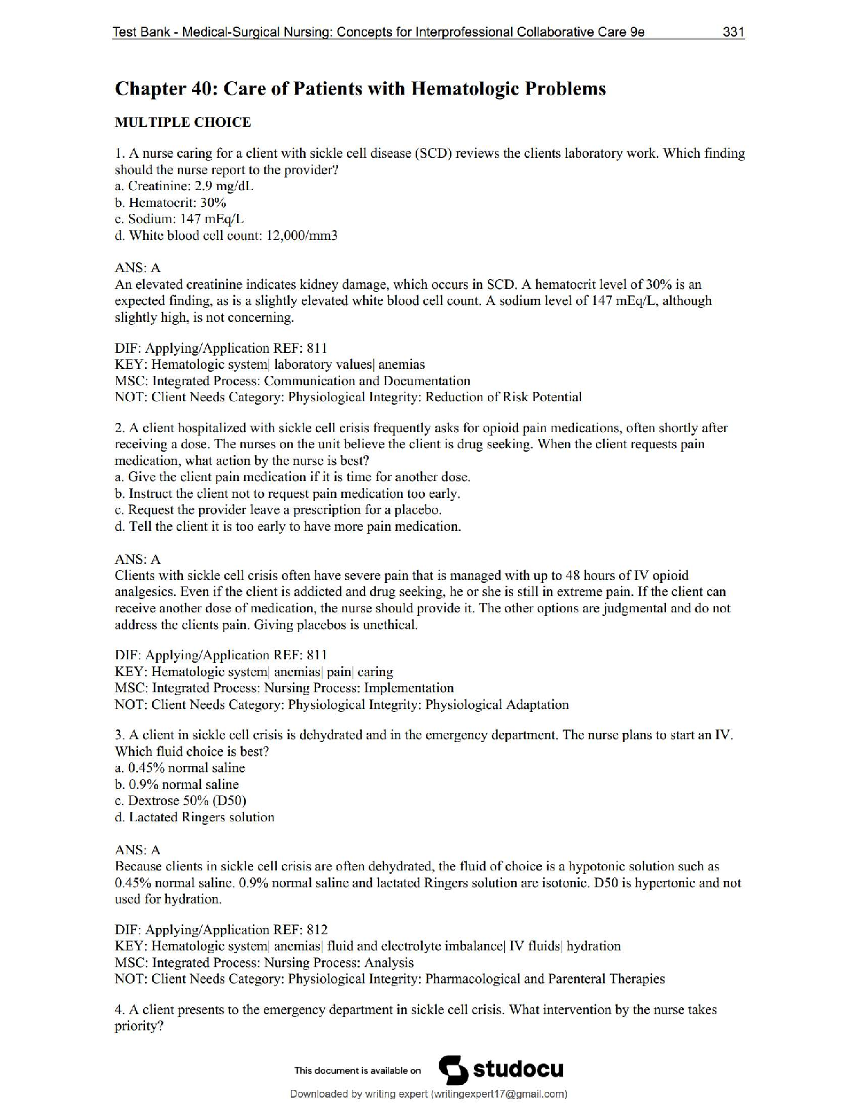 *NURSING > QUESTIONS & ANSWERS > NUR 242 Galen College – Chapter 40: Hematologic Problems Study Guide | NEW 2025 Updated Version – Score 100%