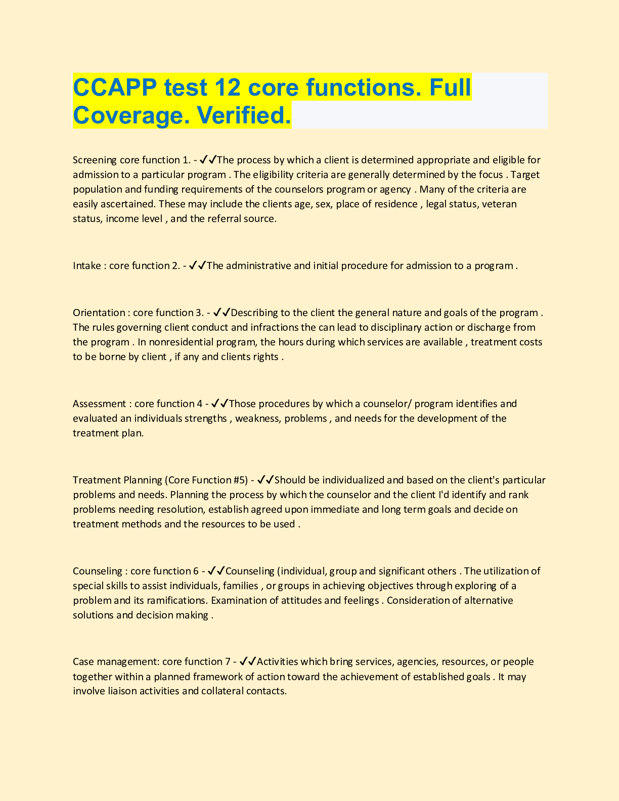 Physiology > QUESTIONS & ANSWERS > CCAPP test 12 core functions. Full Coverage. Verified.