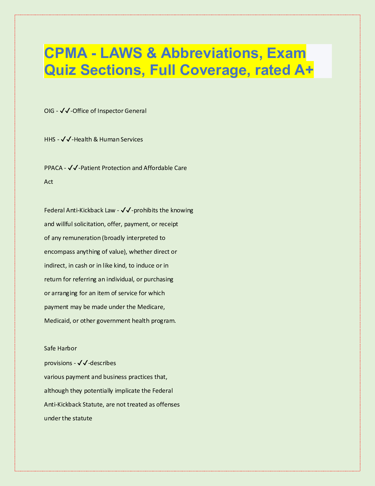 *NURSING > QUESTIONS & ANSWERS > CPMA - LAWS & Abbreviations, Exam Quiz Sections, Full Coverage, rated A+ OIG - ✔✔-Office of Inspector General