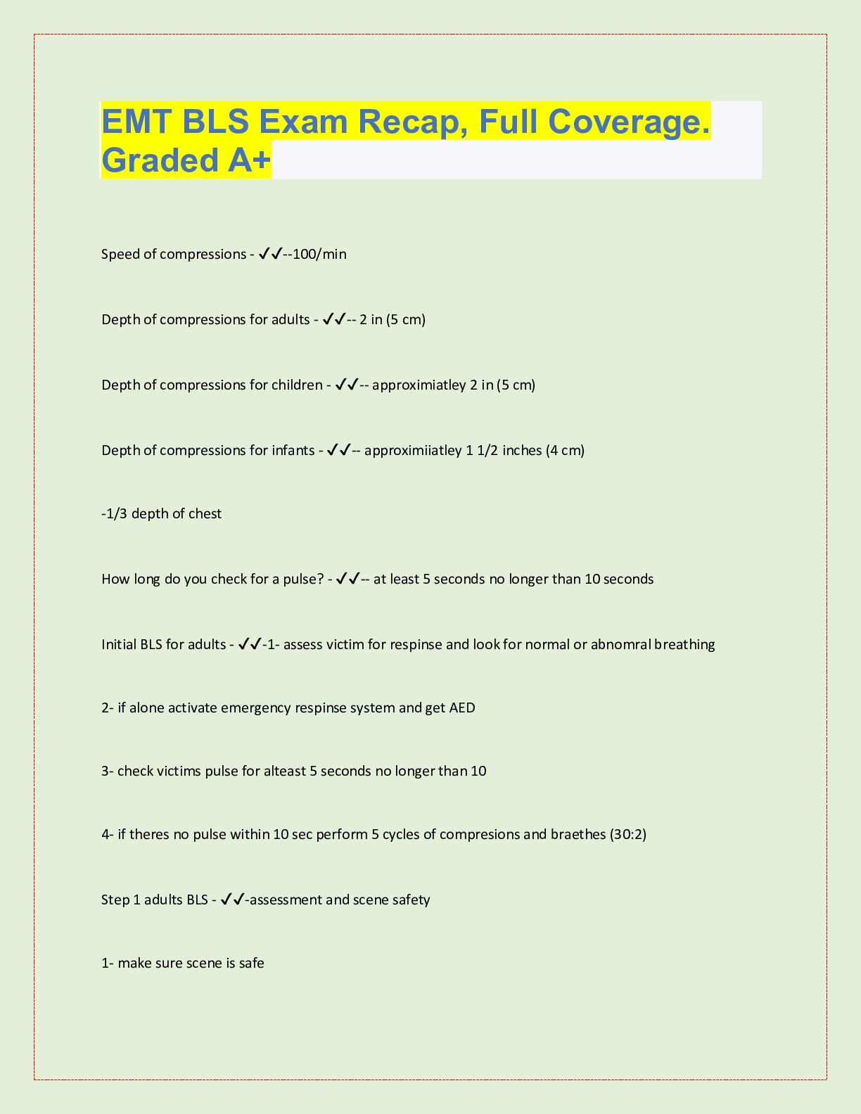 *NURSING > QUESTIONS & ANSWERS > EMT BLS Exam Recap, Full Coverage. Graded A+