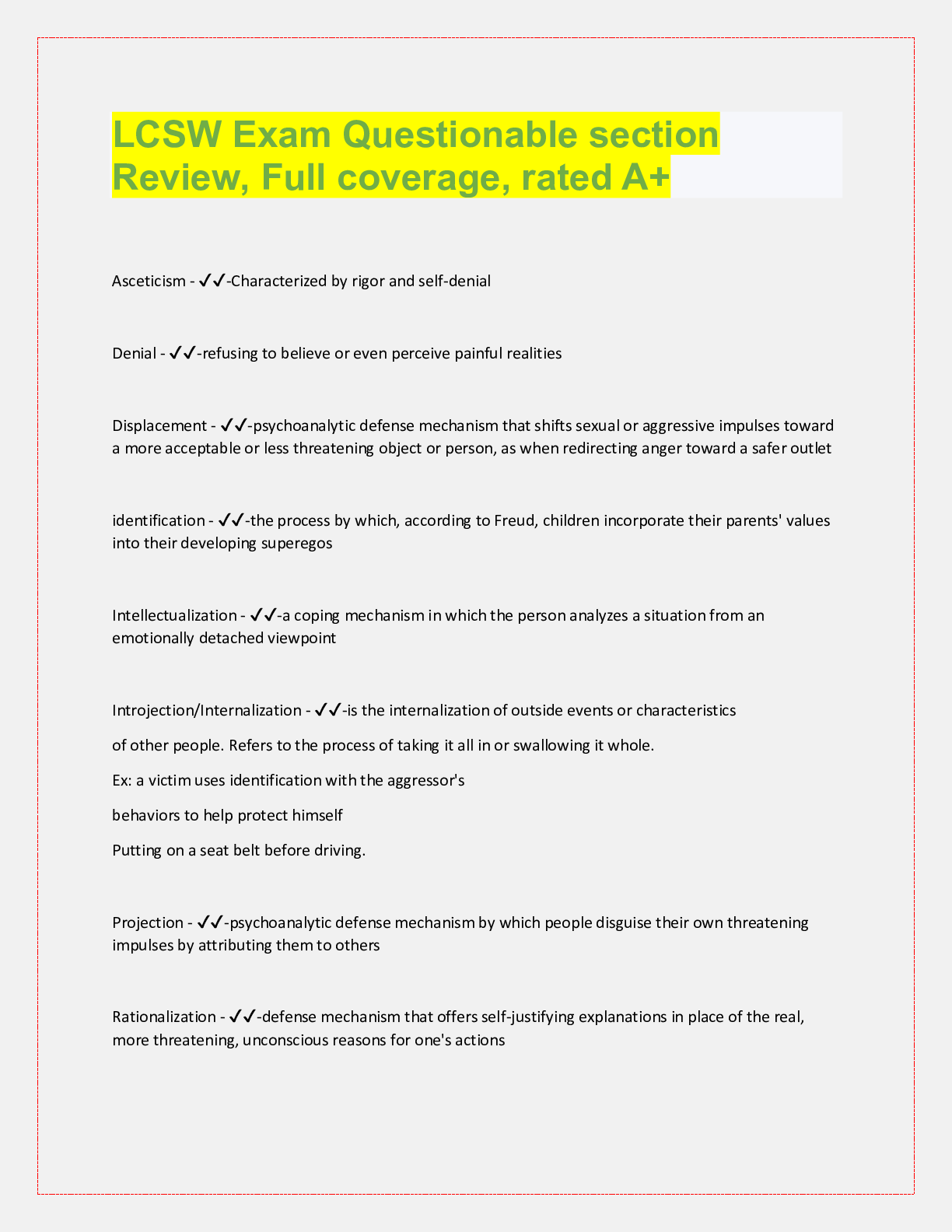 Social Sciences > QUESTIONS & ANSWERS > LCSW Exam Questionable section Review, Full coverage, rated A+