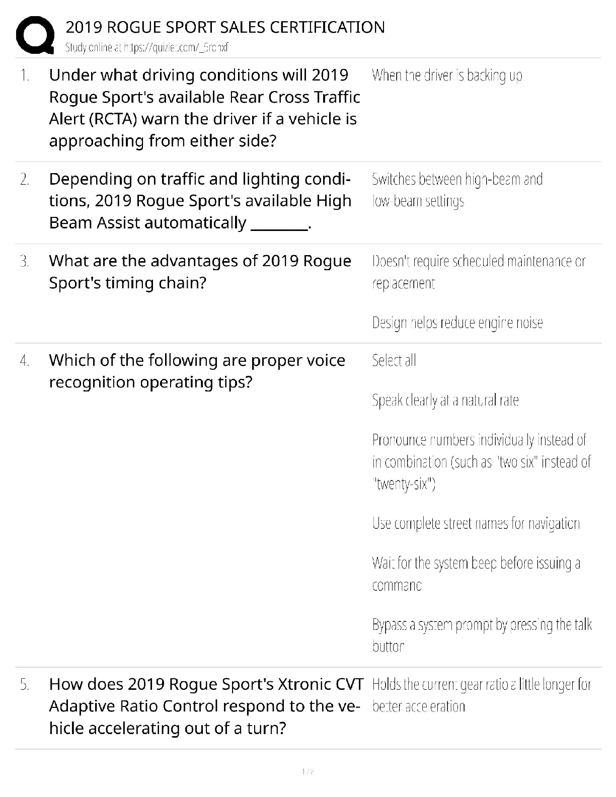 Marketing > QUESTIONS & ANSWERS > 2019 Rogue Sport Sales Certification / Nissan Product Knowledge / 2025 Update / Score 100%