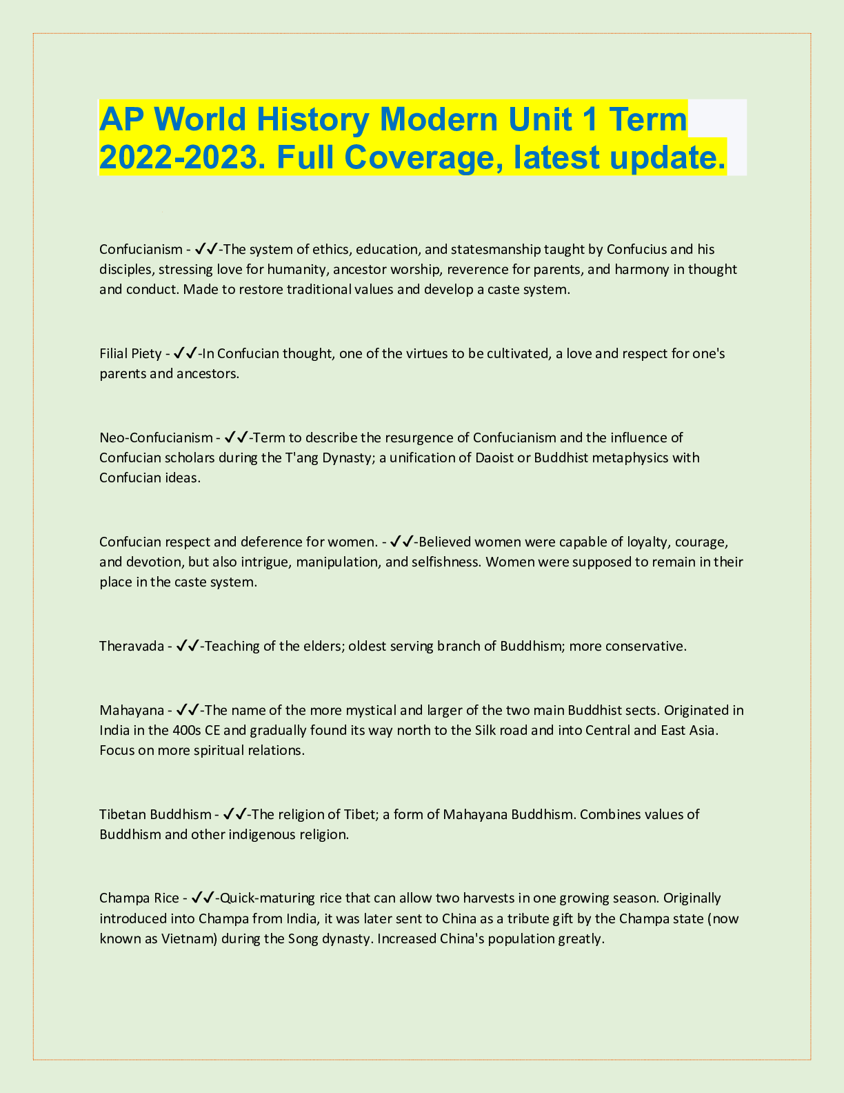 History > QUESTIONS & ANSWERS > AP World History Modern Unit 1 Term 2022-2023. Full Coverage, latest update.