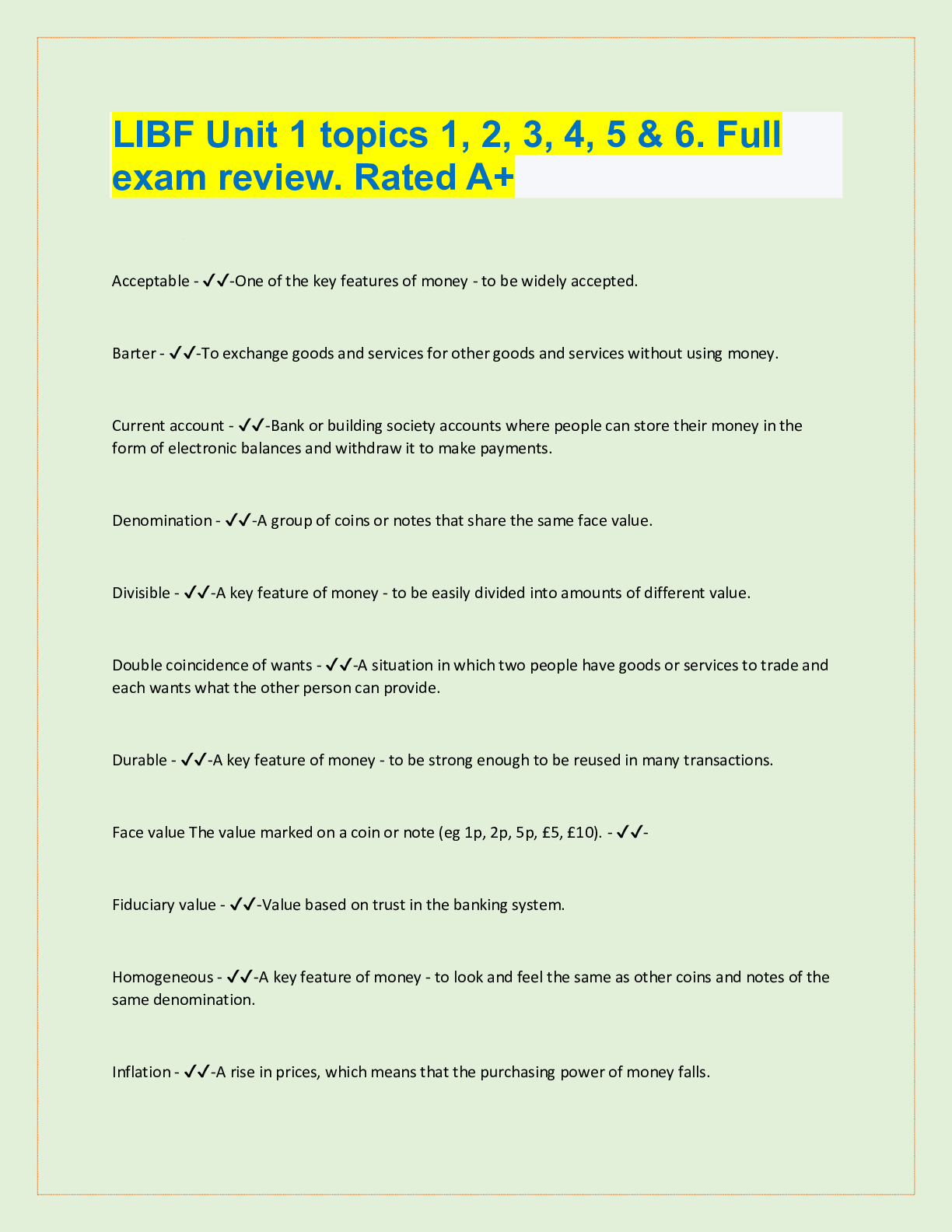 Finance > QUESTIONS & ANSWERS > LIBF Unit 1 topics 1, 2, 3, 4, 5 & 6. Full exam review. Rated A+