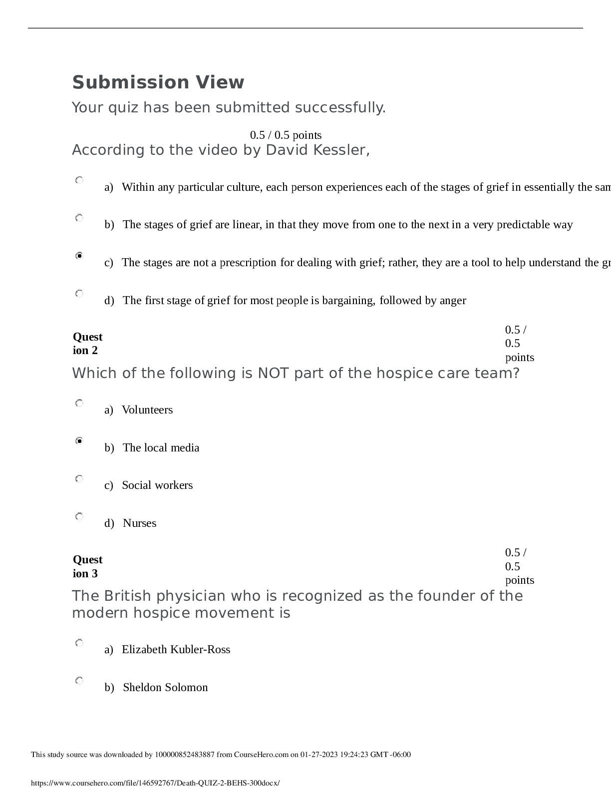 Biology > QUESTIONS & ANSWERS > Basic Experimental Studies Involving Humans-BEHS 380 Death QUIZ 2 (answered) 20Q's