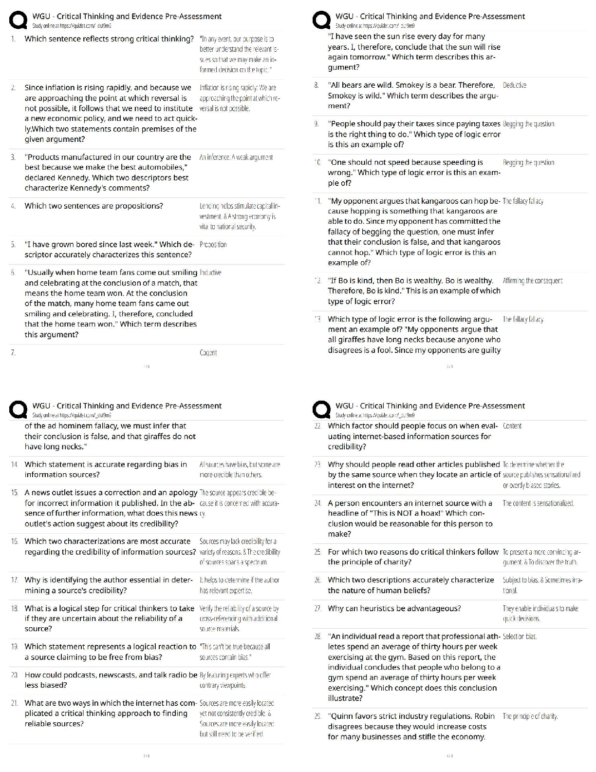 Business Management > QUESTIONS & ANSWERS > WGU Critical Thinking and Evidence Pre-Assessment / Score 100% / New Version / 2025 Update / Study Guide & Test Bank