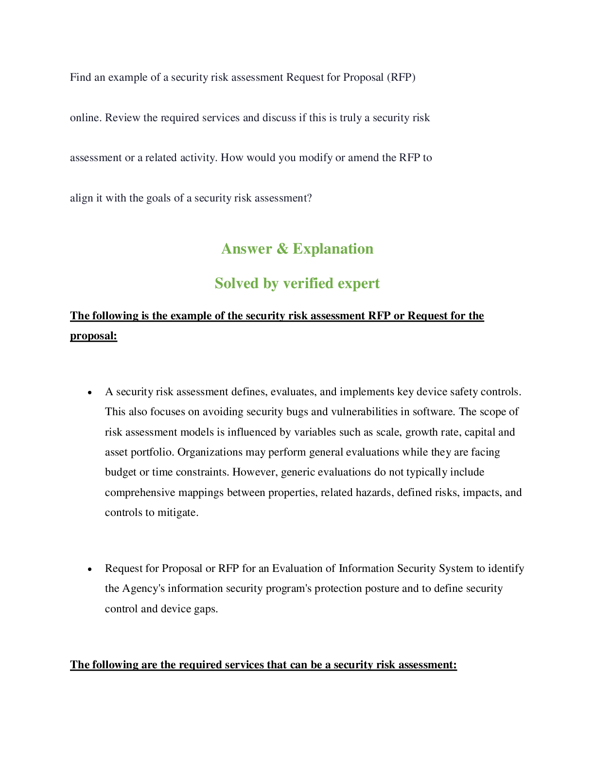 Public Health > QUESTIONS & ANSWERS > Find an example of a security risk assessment Request for Proposal (RFP)