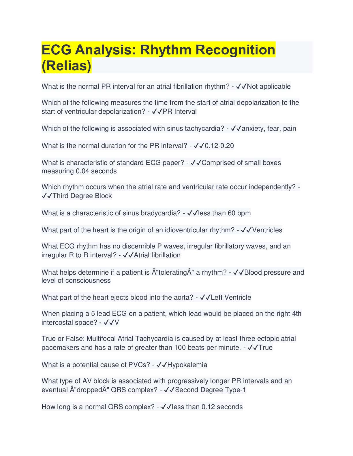 Health Care > QUESTIONS & ANSWERS > ECG Analysis: Rhythm Recognition (Relias)