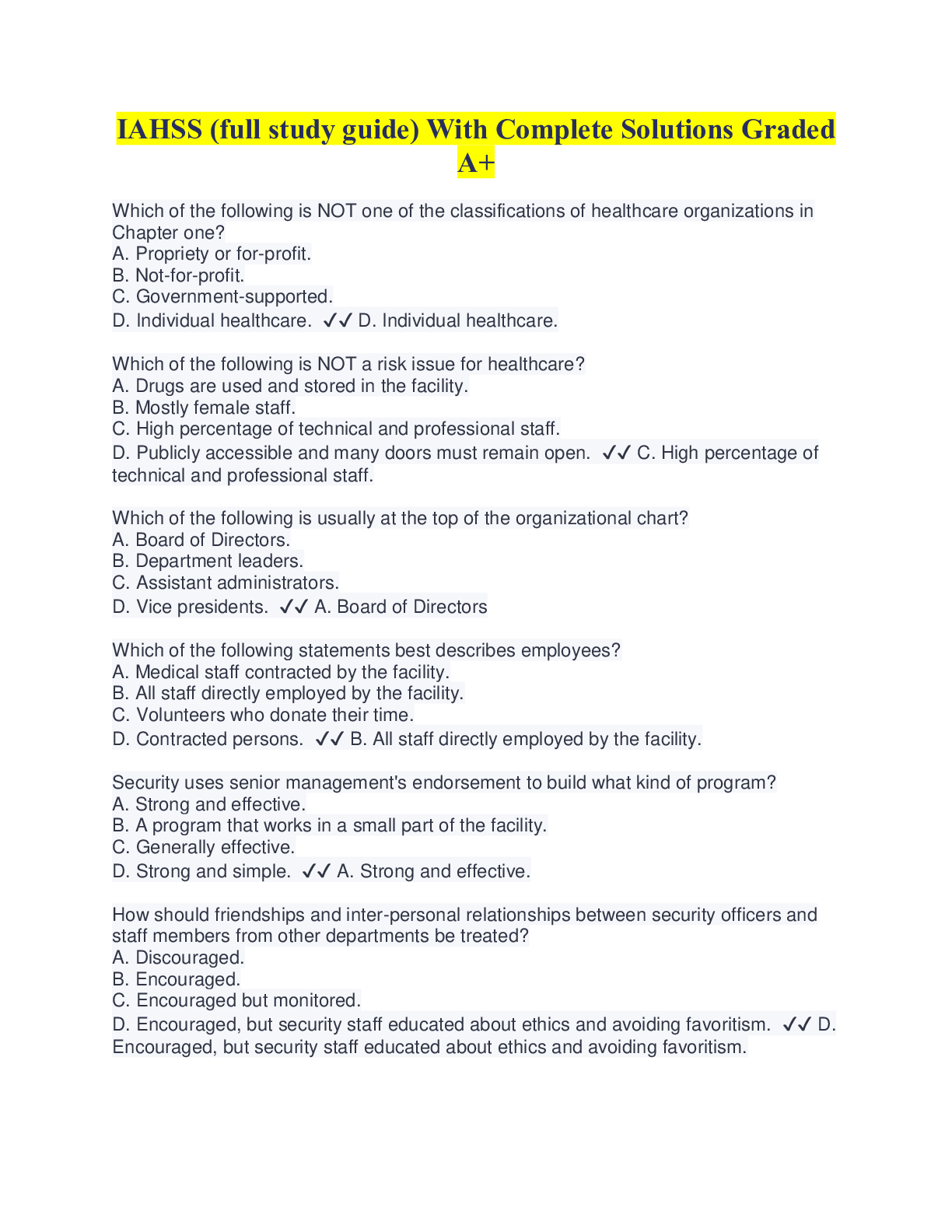 Health Care > QUESTIONS & ANSWERS > IAHSS (full study guide) With Complete Solutions Graded A+