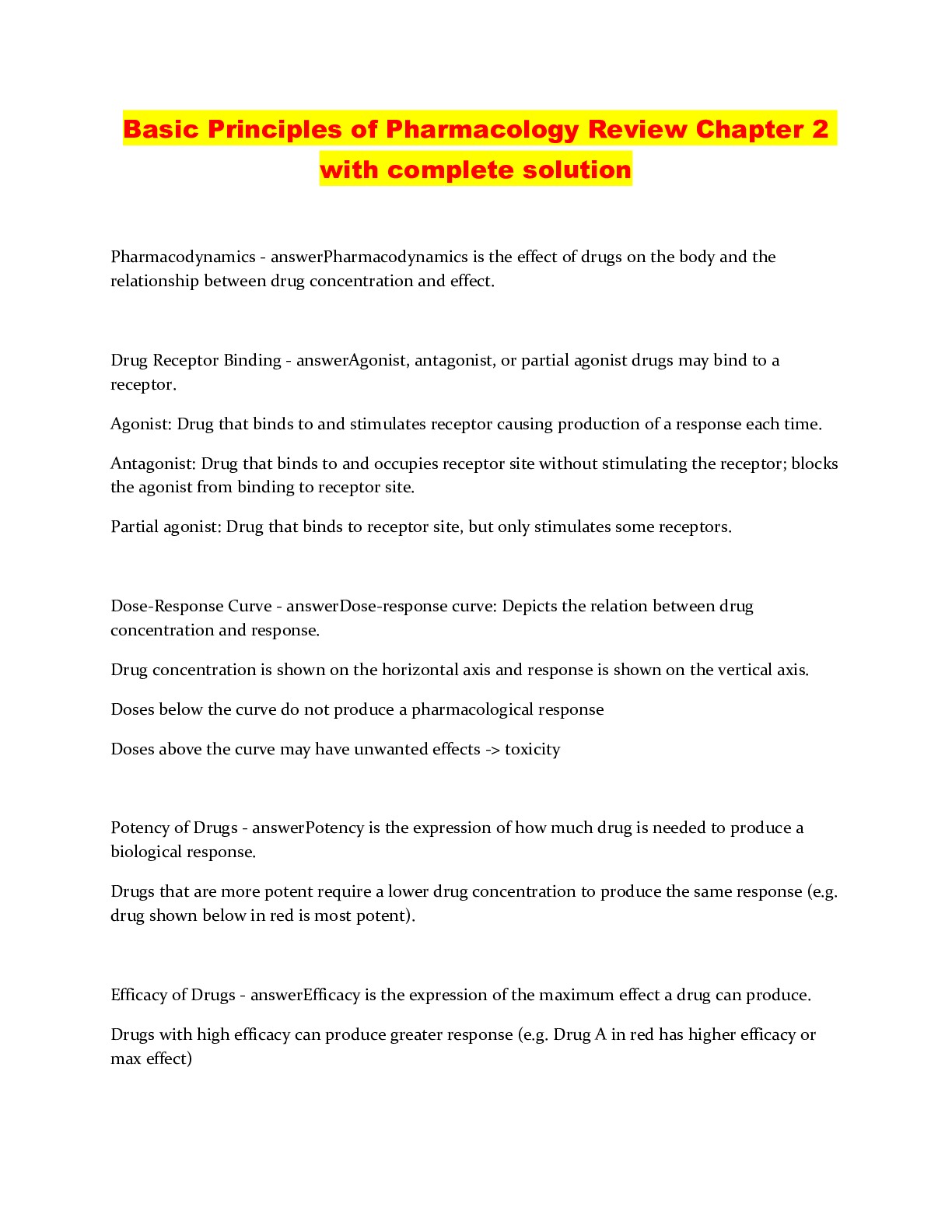 Pharmacology > QUESTIONS & ANSWERS > Basic Principles of Pharmacology Review Chapter 2 with complete solution