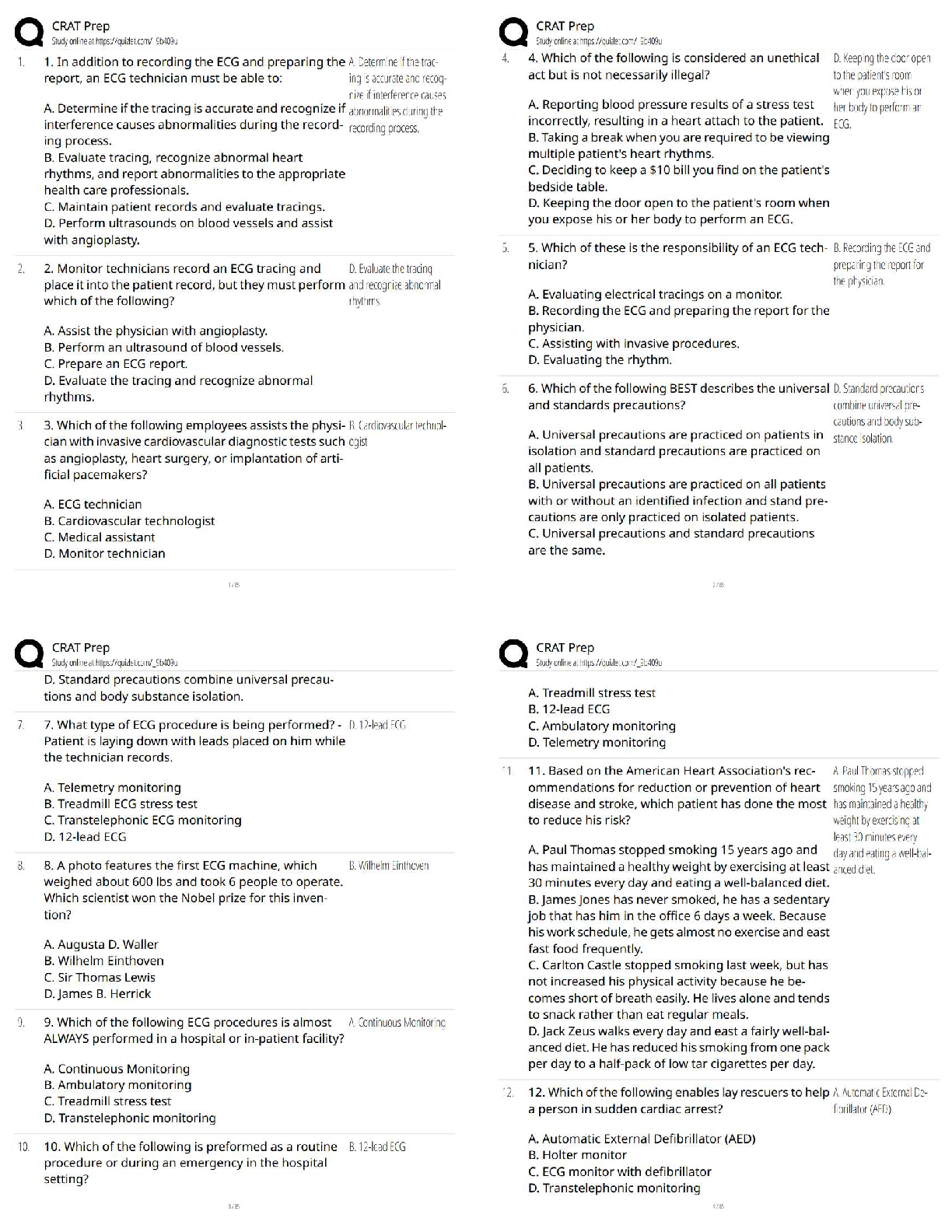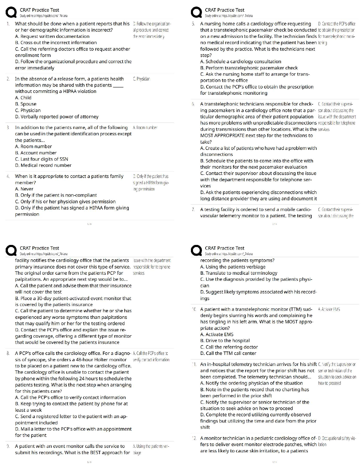 Cardiology > QUESTIONS & ANSWERS > CRAT Review / Score 100% / New Version / 2025 Update / Full Study Guide & Test Bank