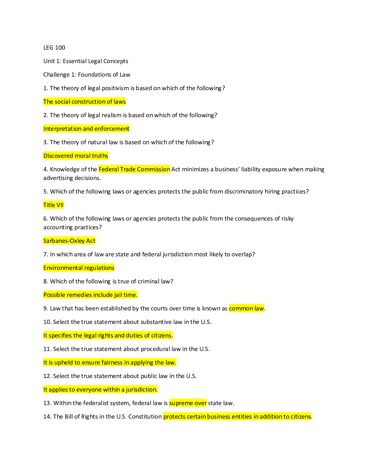 Business Law > QUESTIONS & ANSWERS > Strayer University - LEG100 LEG 100 Study Question and answers/ LEG 100 Test bank, all units, absolute A+ guide.