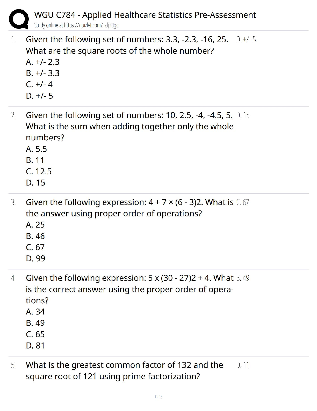 Applied Science > QUESTIONS & ANSWERS > WGU C784 – Applied Healthcare Statistics Objective Assessment #1 / 2025 Update / Verified Questions, Answers & Study Guide to Score 100%