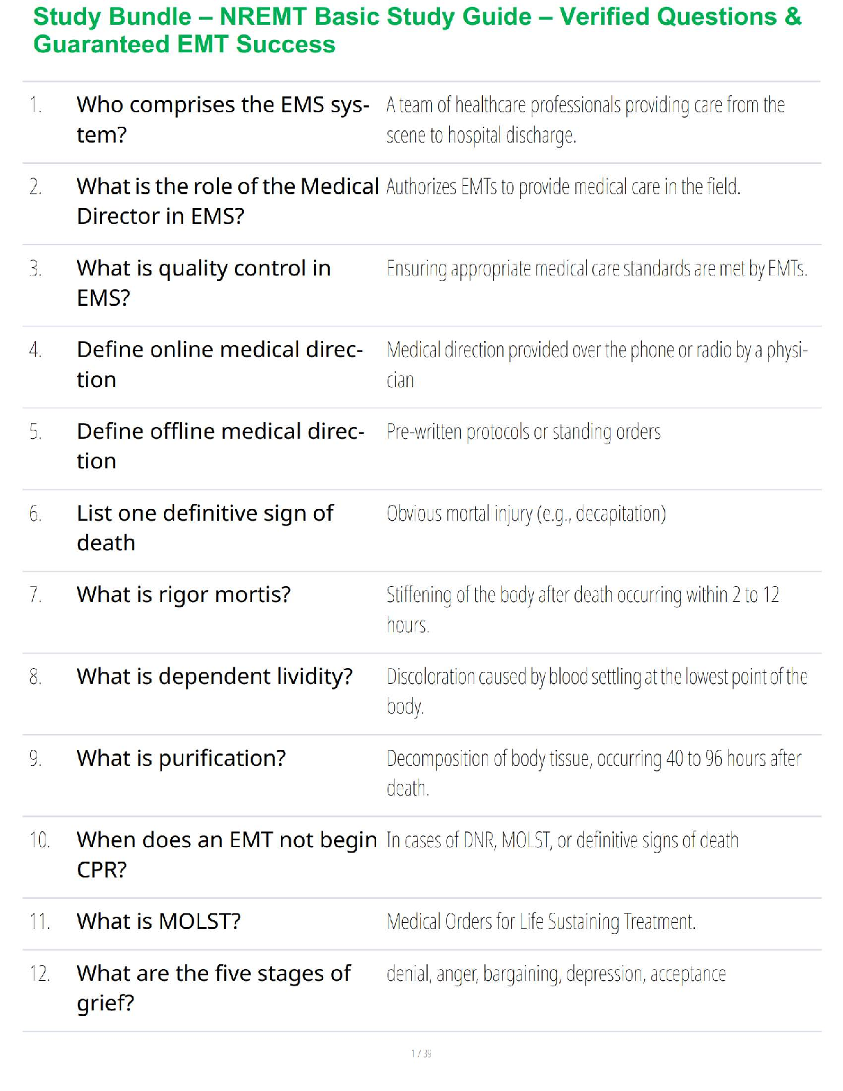 ATI-Medical Surgical-Critical Care > QUESTIONS & ANSWERS > Study Bundle – NREMT Basic Study Guide – Verified Questions & Guaranteed EMT Success