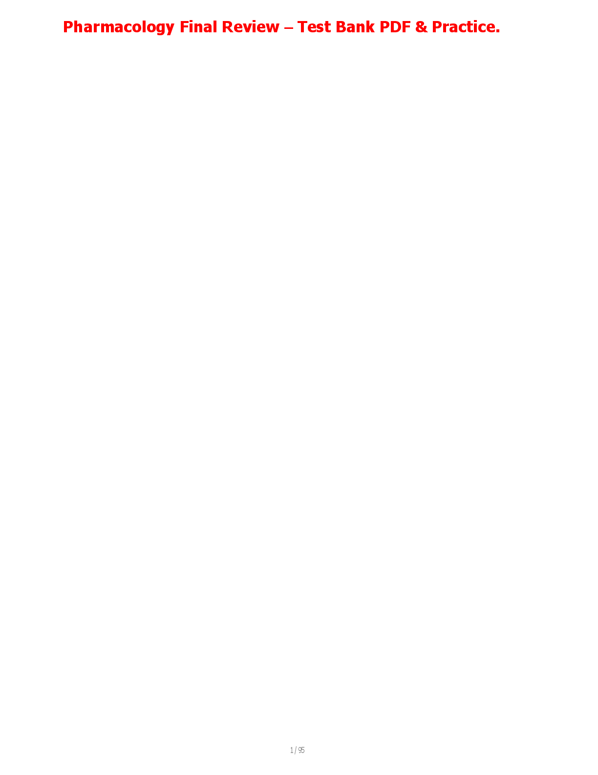 Pharmacology > QUESTIONS & ANSWERS > Pharmacology Final Review – Test Bank PDF & Practice.