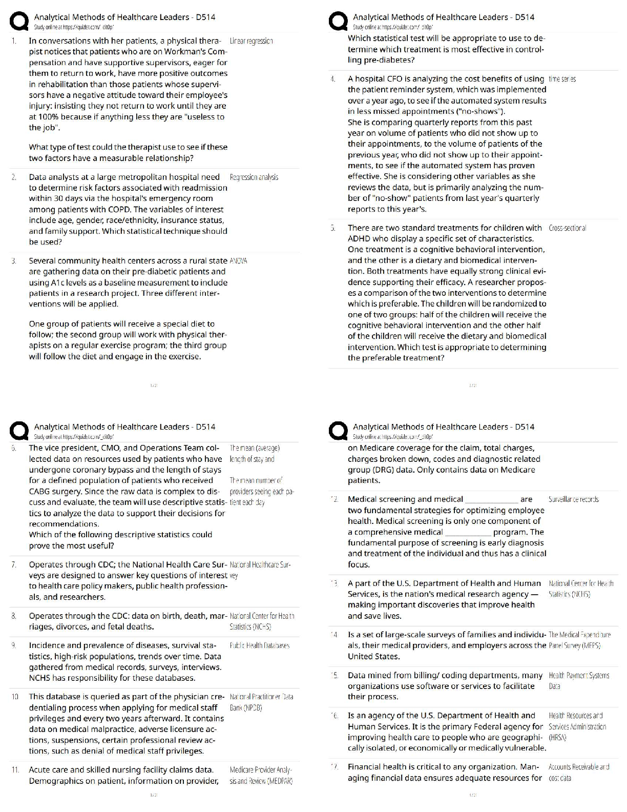 healthcare > QUESTIONS & ANSWERS > Analytical Methods of Healthcare Leaders – D514 / 2025 Update / New Version / Score 100% Study Guide & Test Bank