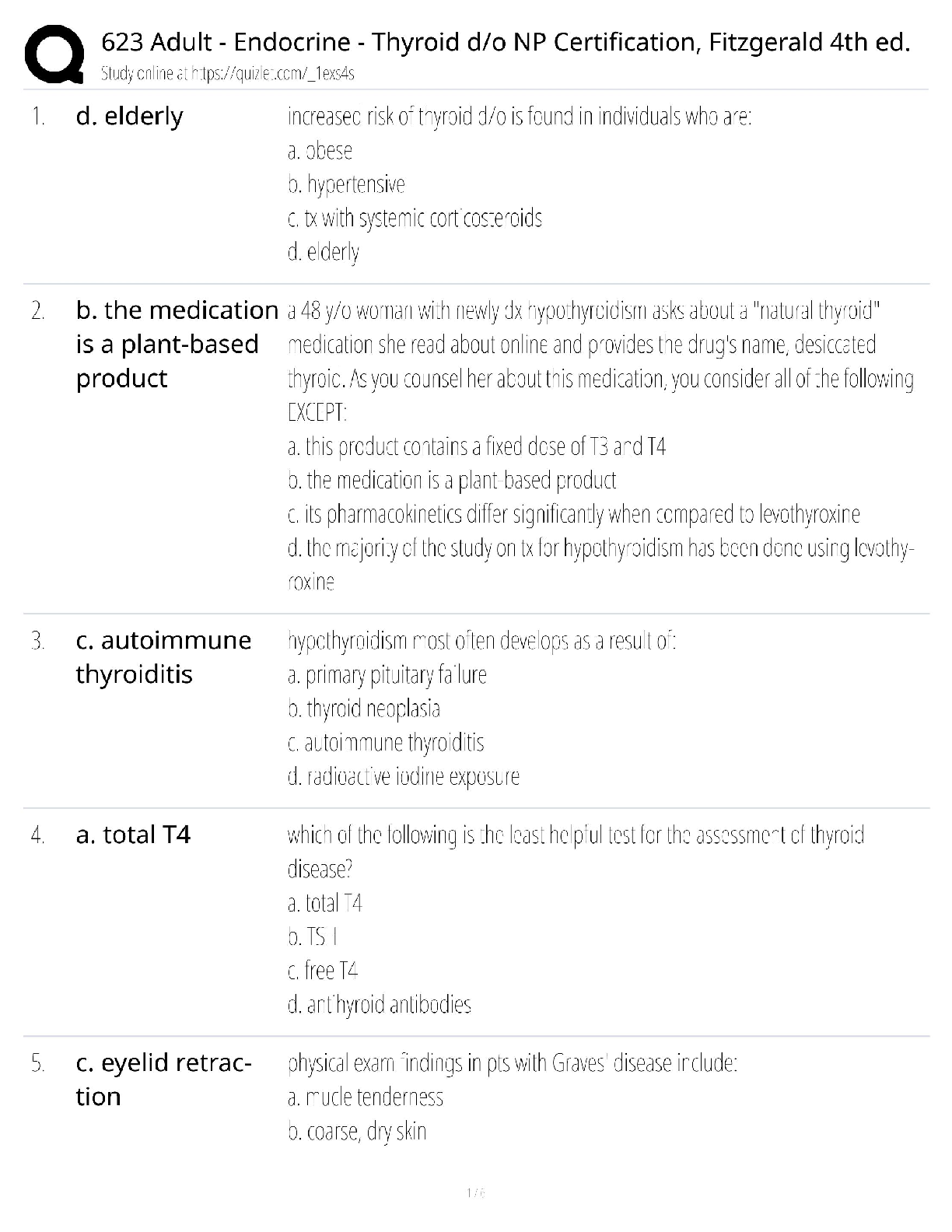 *NURSING > QUESTIONS & ANSWERS > Adult Endocrine Thyroid NP Certification / Fitzgerald 4th Edition Guide / 2025 Update / Score 100%