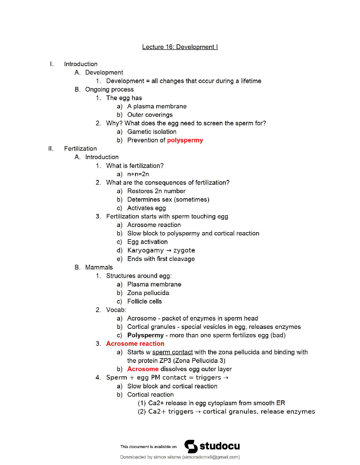 Biology > QUESTIONS & ANSWERS > Gen Bio II / Development I-II Lecture Notes / Complete Review & Key Concepts / Score 100% / 2025 Update – Exam, Quiz, and Study Guide