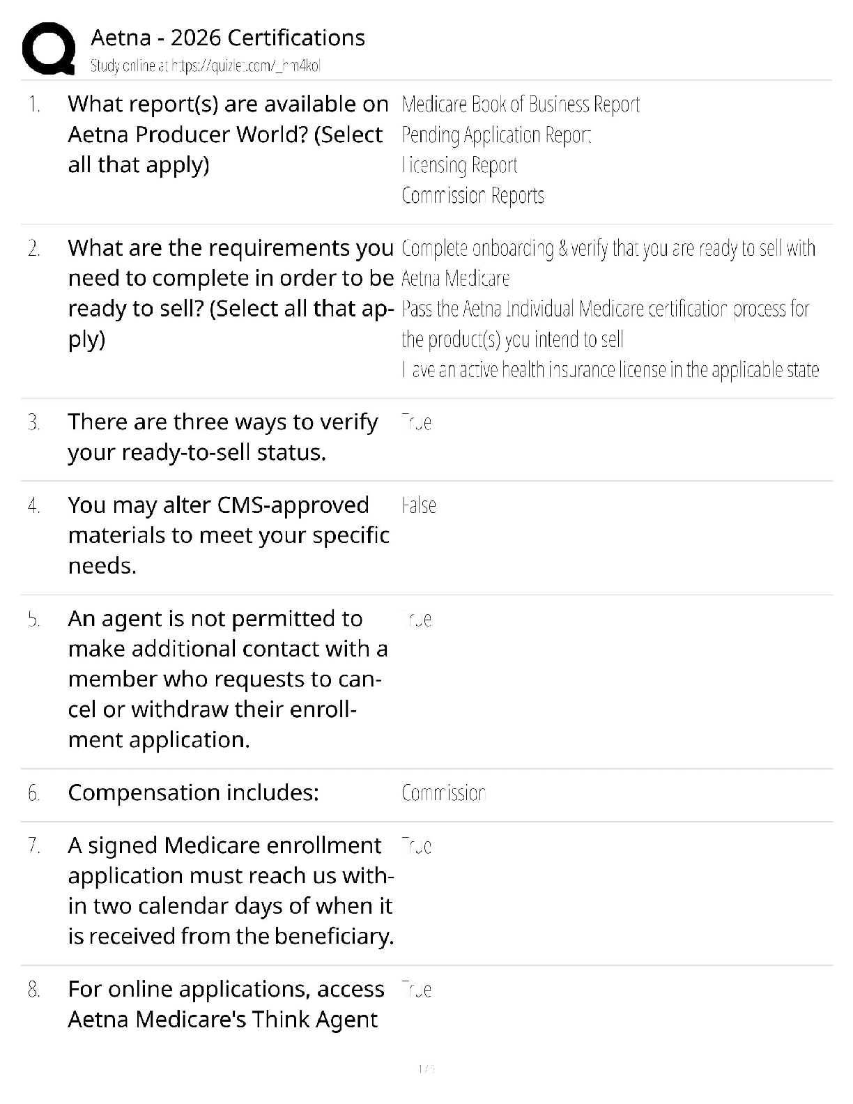 Medical Studies > QUESTIONS & ANSWERS > Aetna 2026 Certifications / Health Insurance Exams / Updated Test Bank / Pass Guarantee