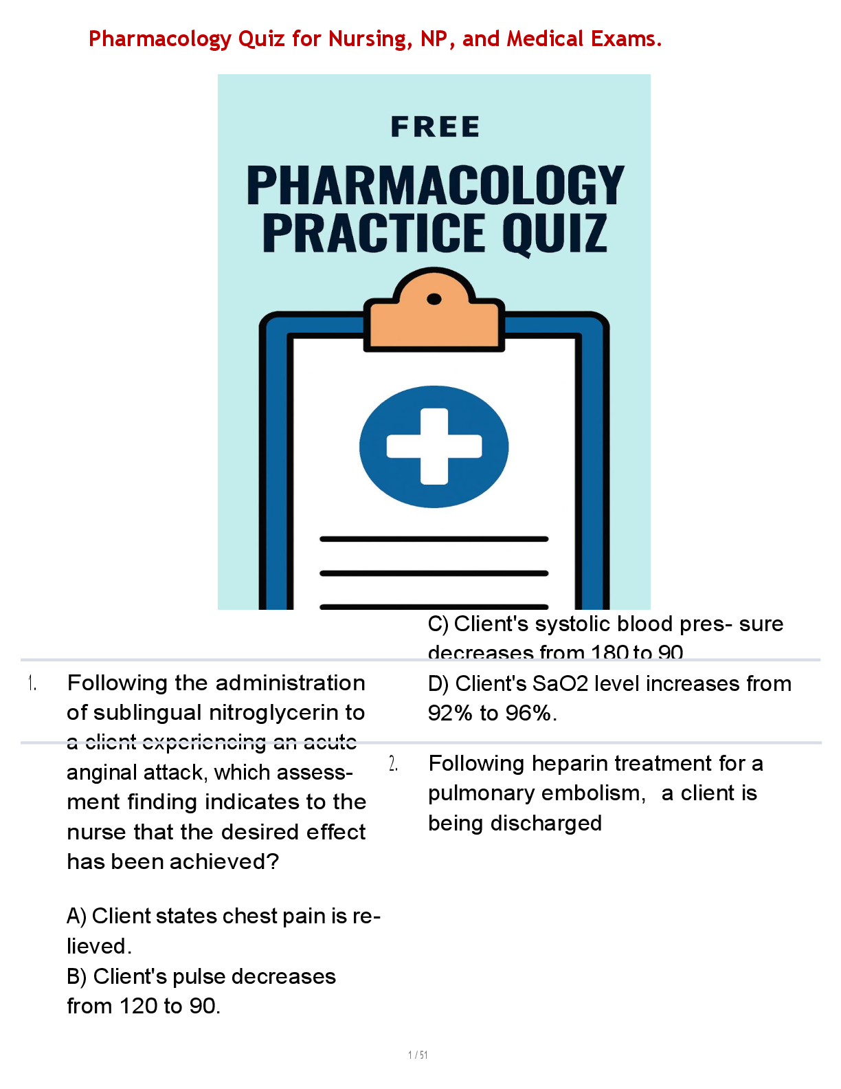 Pharmacology > QUESTIONS & ANSWERS > Pharmacology Quiz for Nursing, NP, and Medical Exams.