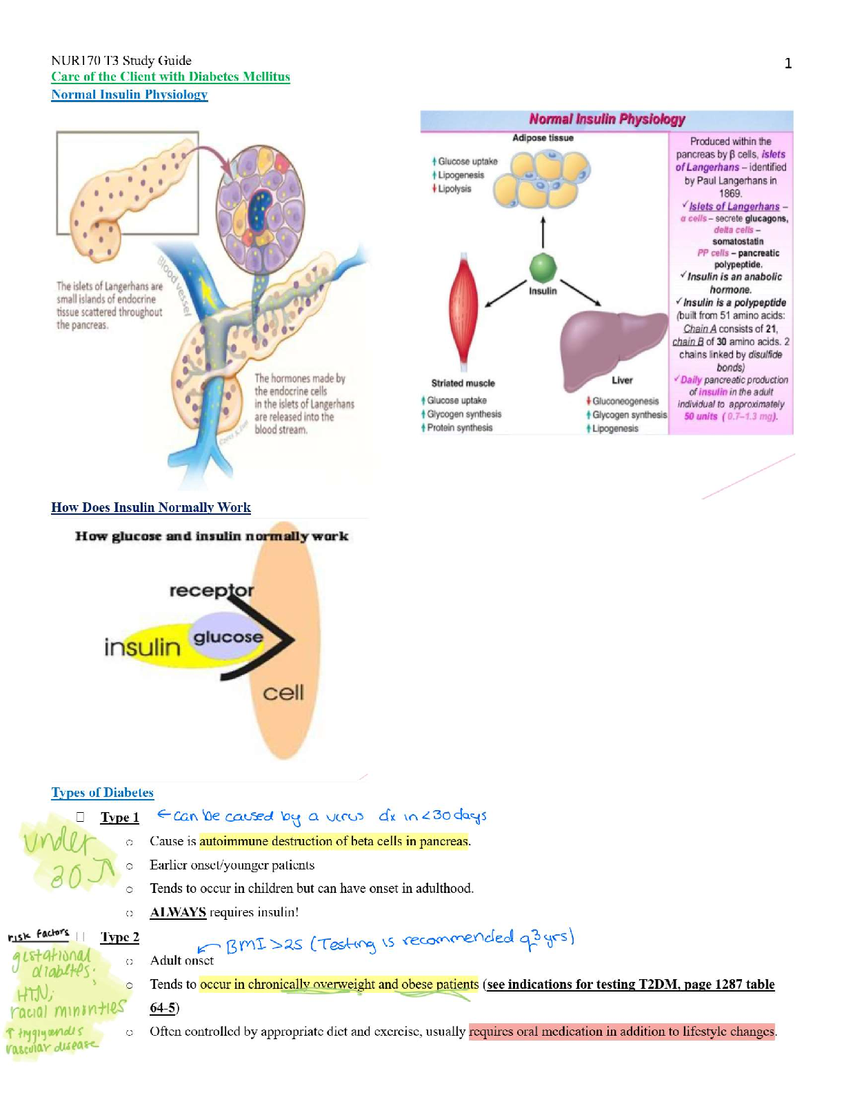 *NURSING > QUESTIONS & ANSWERS > NUR 170 T3 Study Guide 1 – Care of the Client with Diabetes Mellitus & Normal Insulin Physiology – Galen College 2025 Update