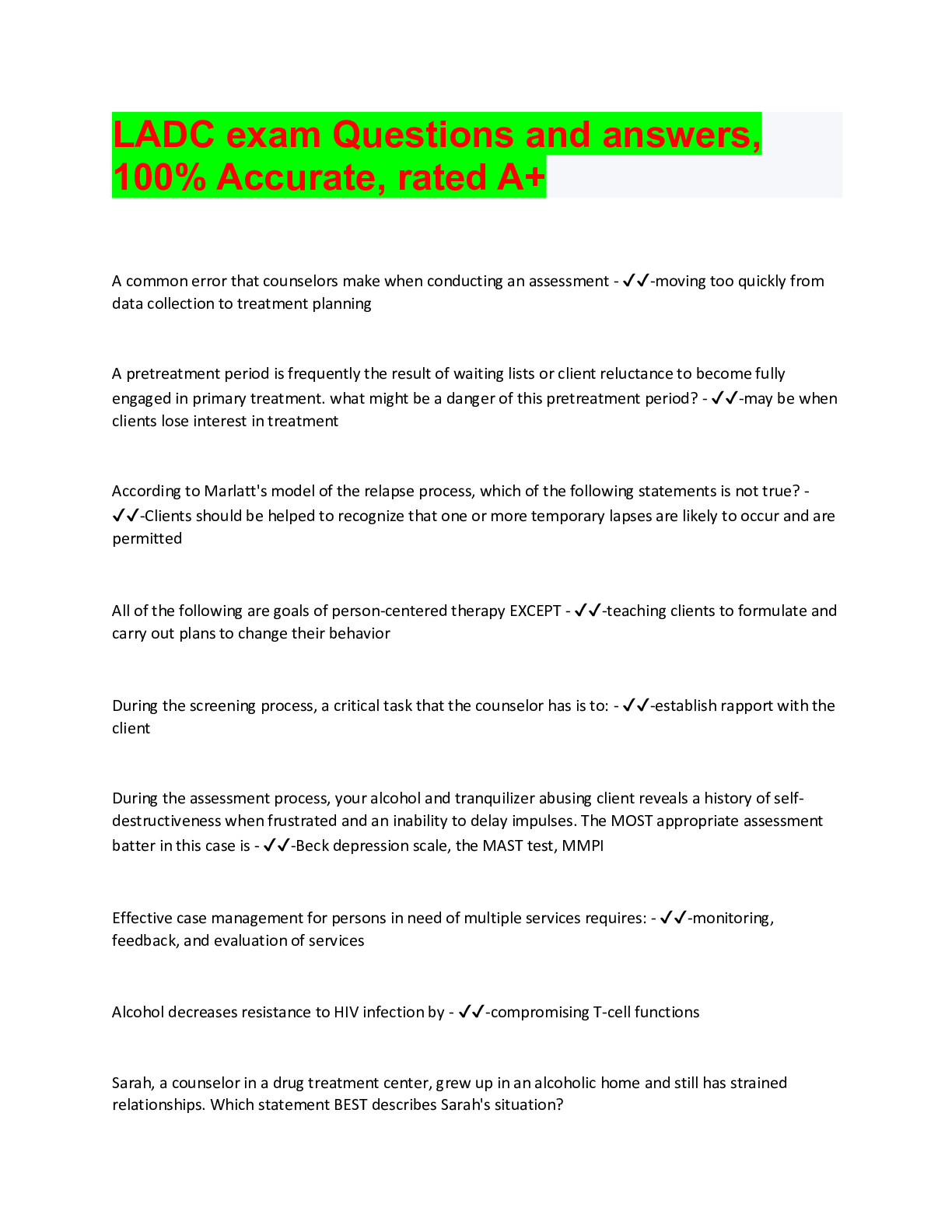 Health Care > QUESTIONS & ANSWERS > LADC exam Questions and answers, 100% Accurate, rated A+ A common error that counse