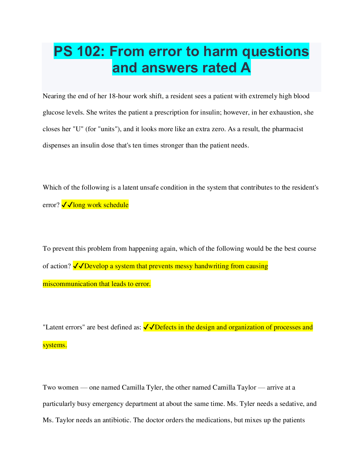 Communication > QUESTIONS & ANSWERS > PS 102 From error to harm questions and answers rated A+