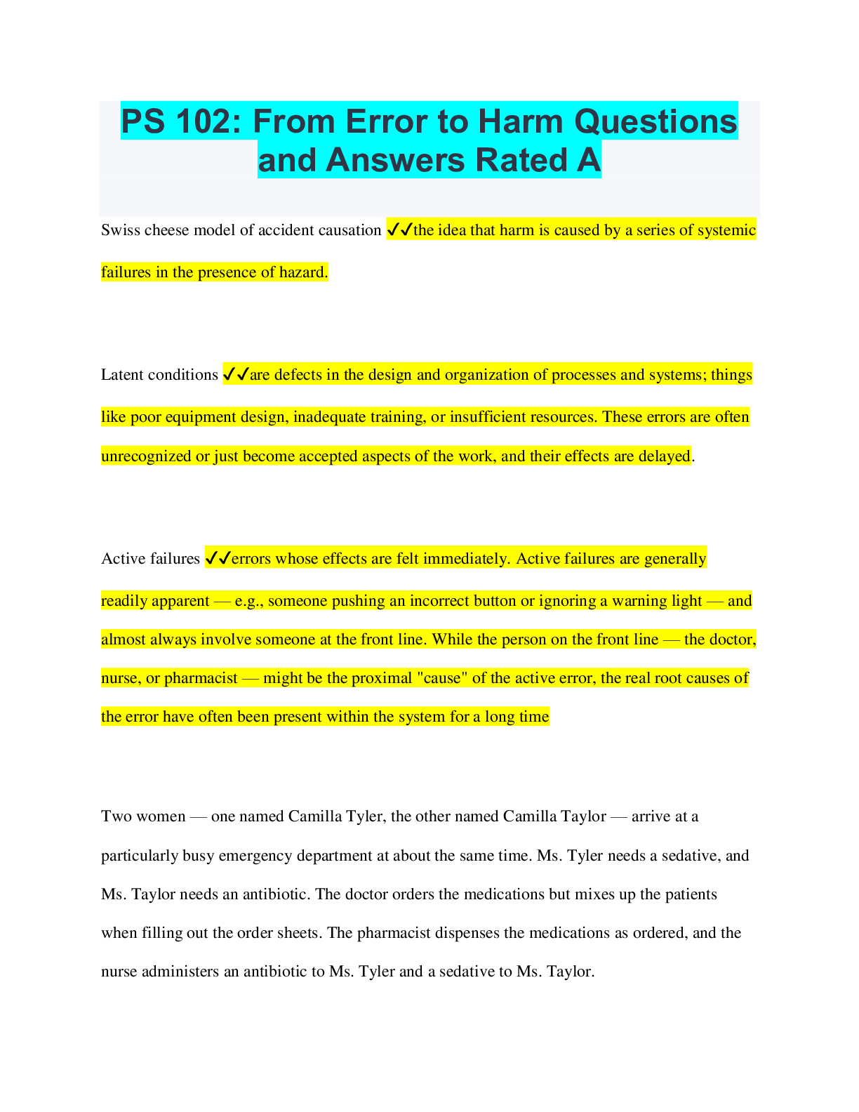 Communication > QUESTIONS & ANSWERS > PS 102: From Error to Harm Questions and Answers Rated A+