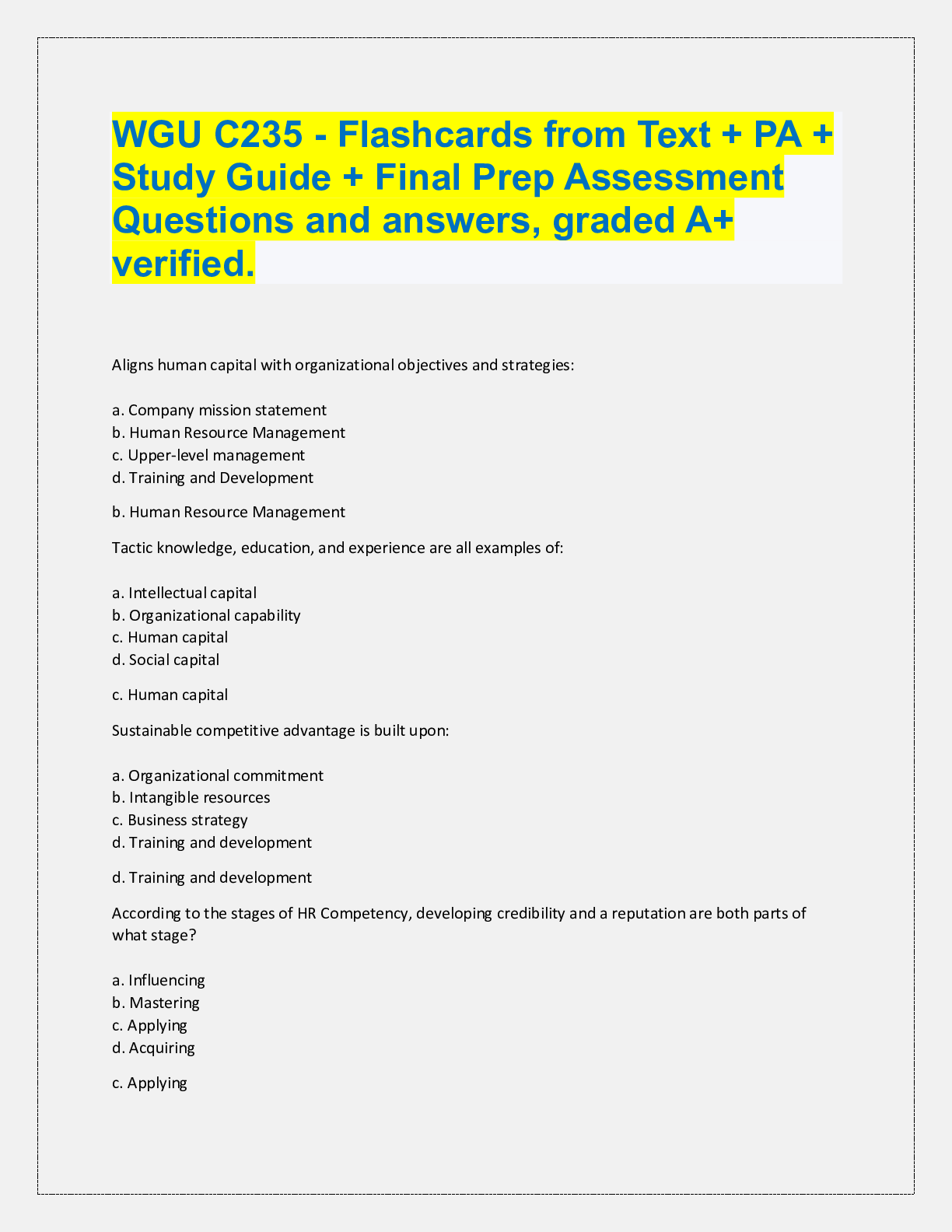 Education > QUESTIONS & ANSWERS > WGU C235 - Flashcards from Text + PA + Study Guide + Final Prep Assessment Questions and answers, graded A+ verified.