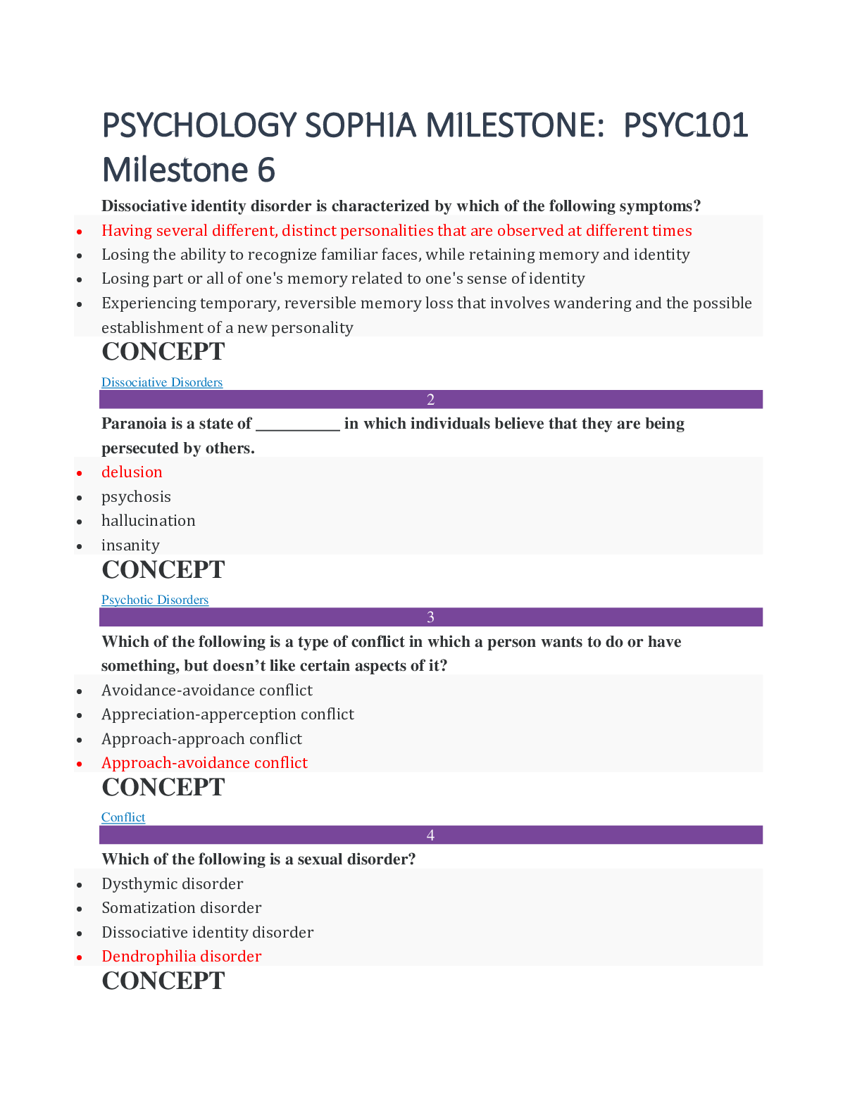 Psychology > SOPHIA Milestone > PSYCHOLOGY SOPHIA MILESTONE: PSYC101 Milestone 6. Exam Review. 100% Score.