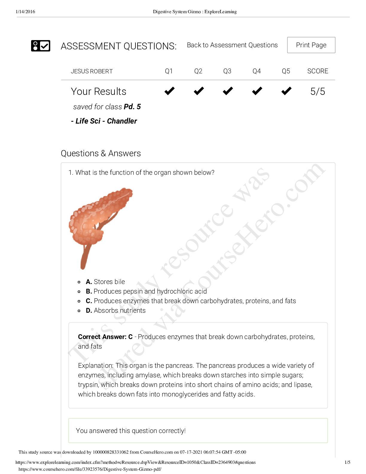 Biology > GIZMOS > Digestive System Gizmo QUESTION AND ANSWERS
