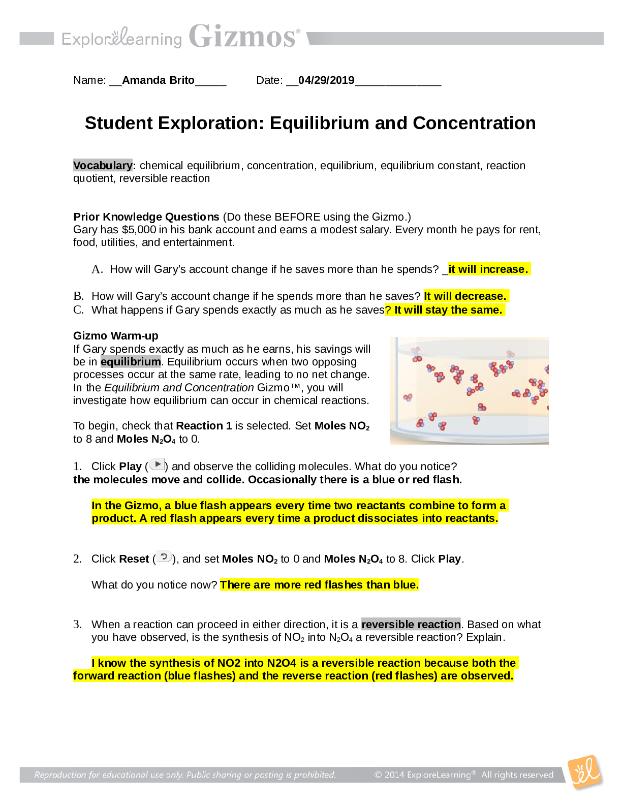 Chemistry > GIZMOS > Student Exploration: Gizmos Equilibrium and Concentration