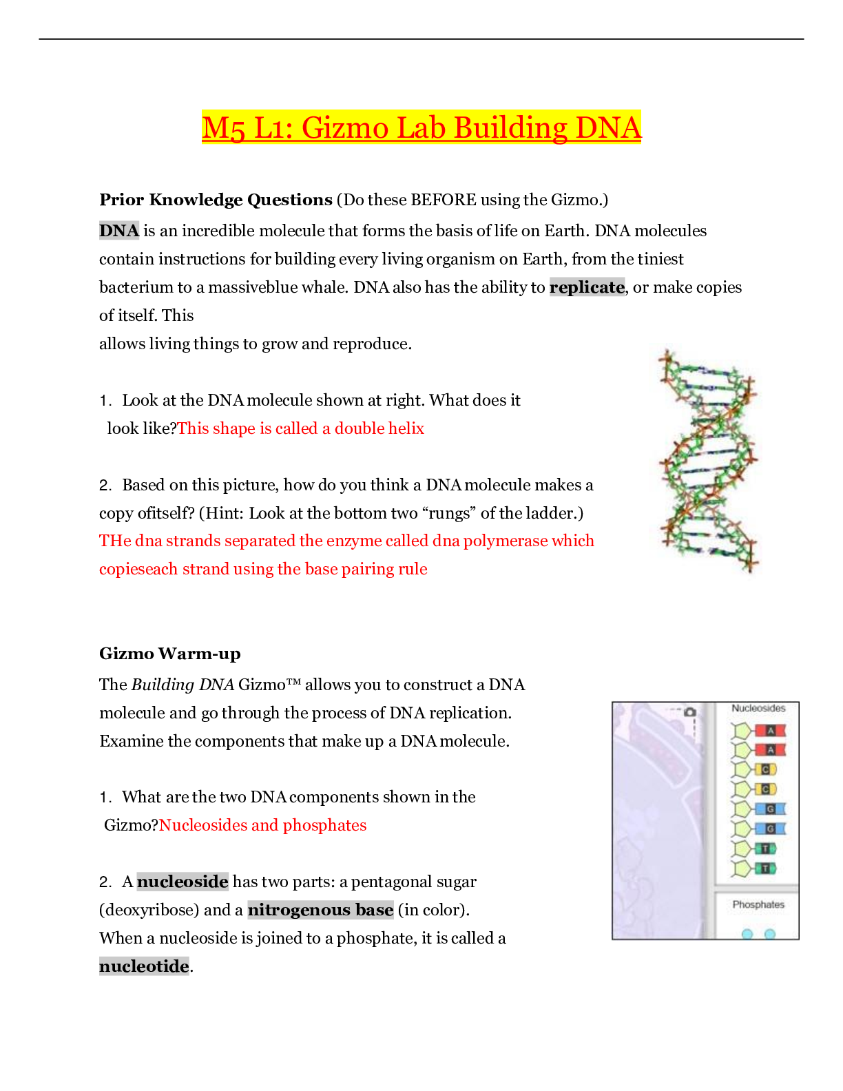 Biology > GIZMOS > M5 L1: Gizmo Lab Building DNA_2021 | Biology_M5_L1_Gizmo_Lab_Building_DNA_100% Pass