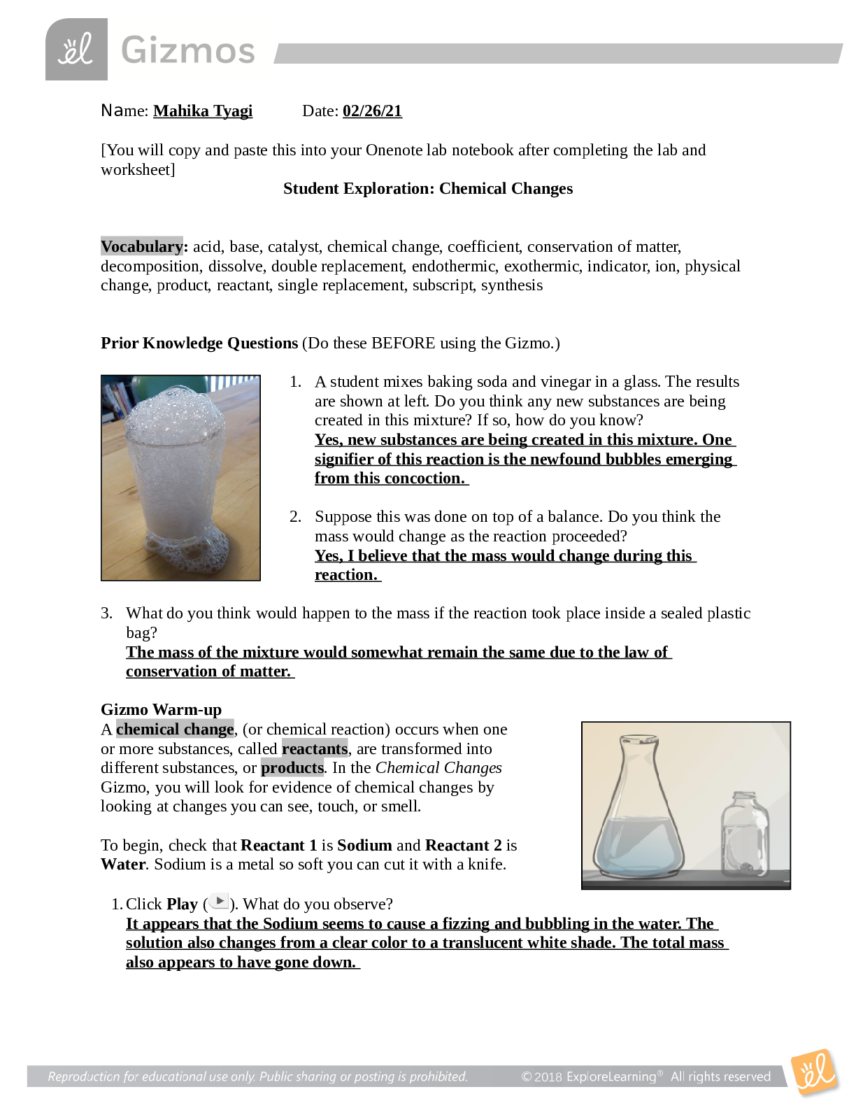 Chemistry > GIZMOS > CHECIMICAL CHANGES GIZMOS FOR SCIENCE 789 -ALL ANSWERS CORRECT-GRADED A