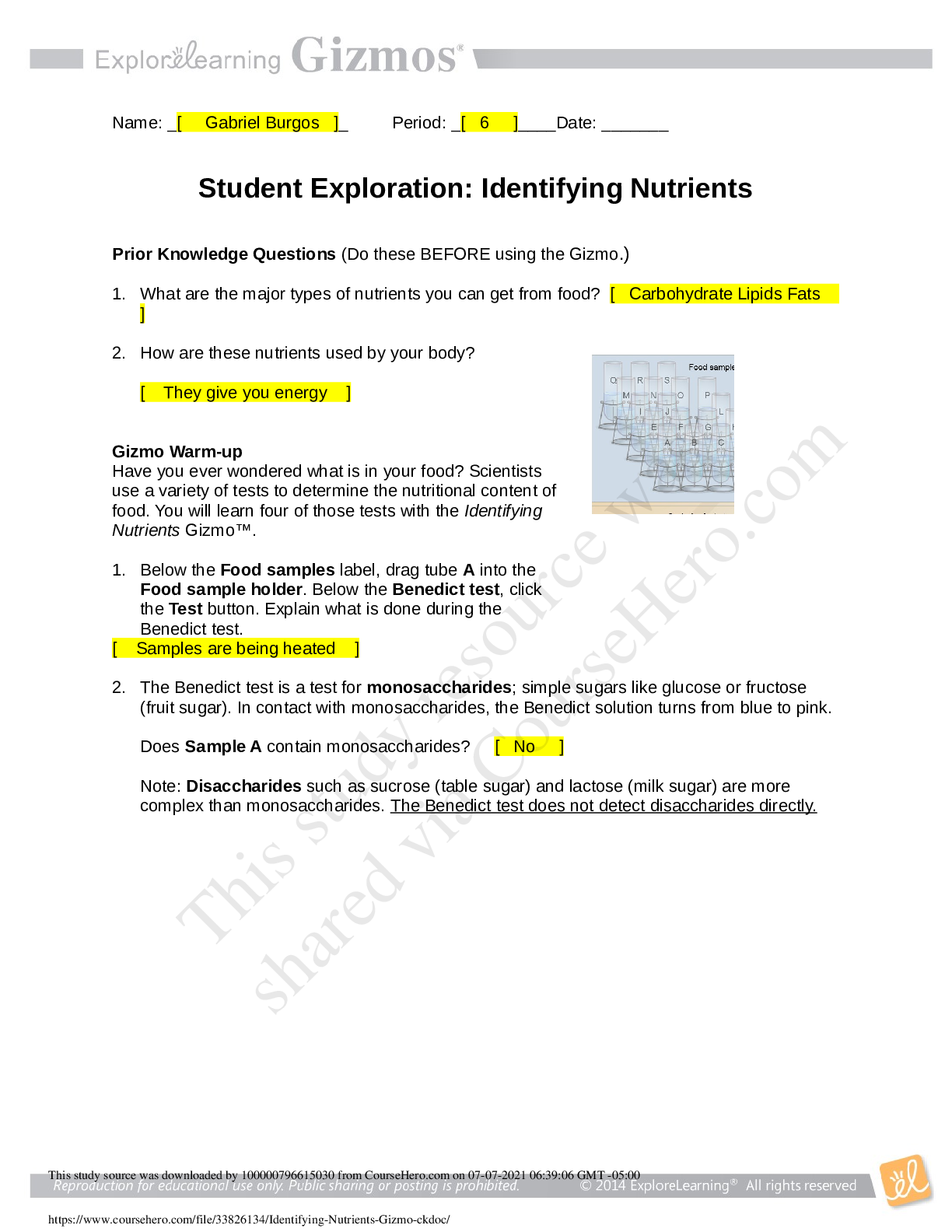 Food and Nutrition > GIZMOS > Identifying Nutrients Questions and A nswers