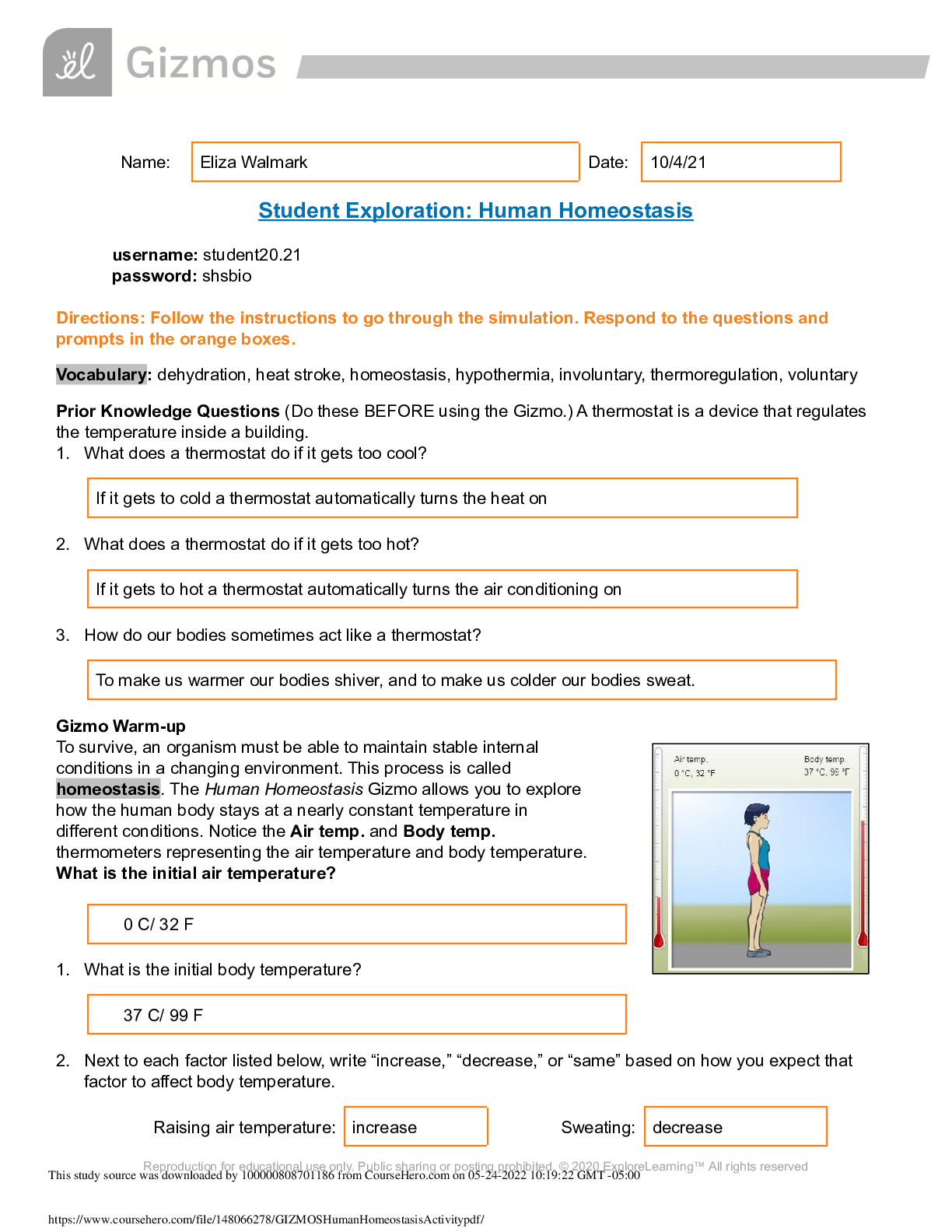 Biology > GIZMOS > GIZMOS Human Homeostasis Activity (updated answer key) 2022