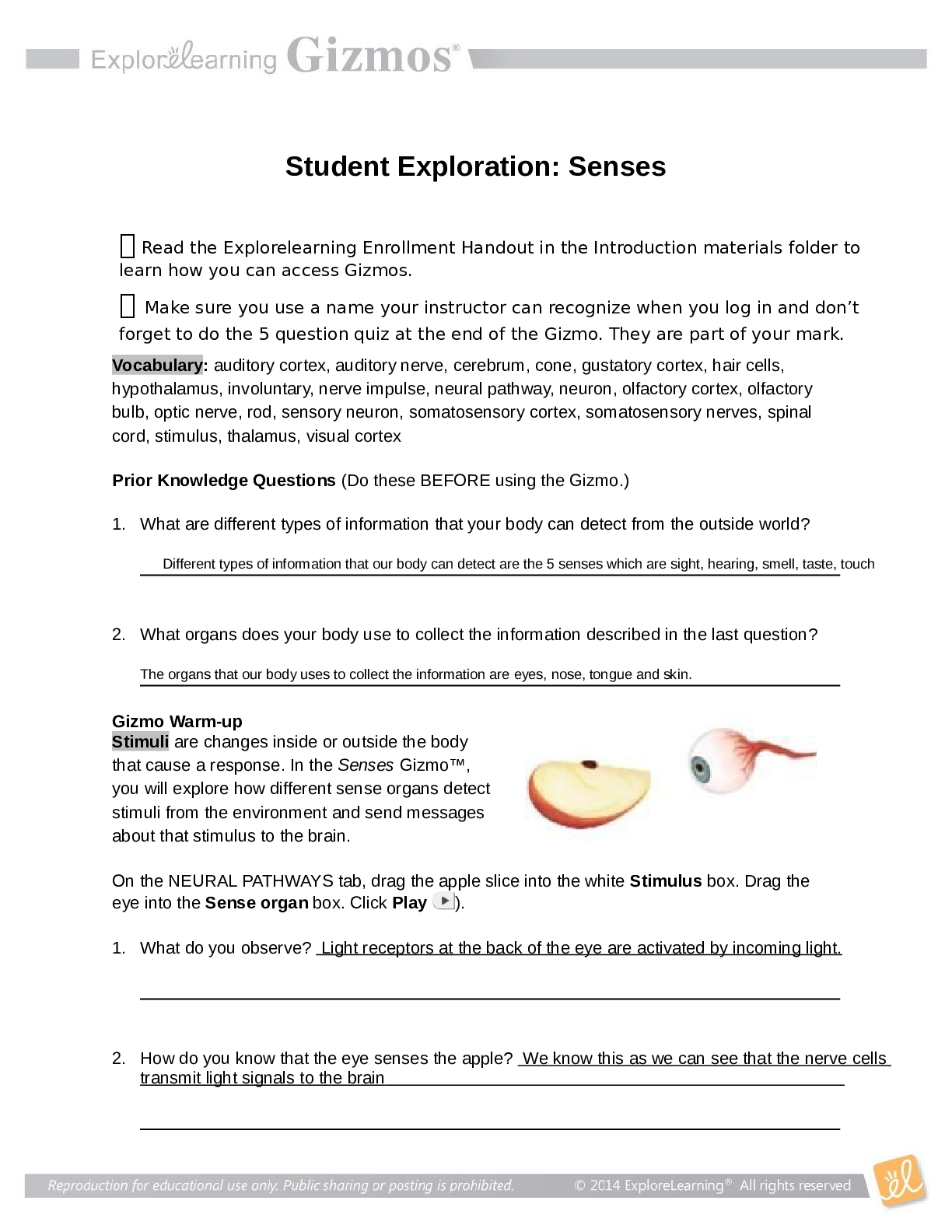 Biology > GIZMOS > SENSES GIZMO(latest Edition) -ALL ANSWERS CORRECT-GRADED A.