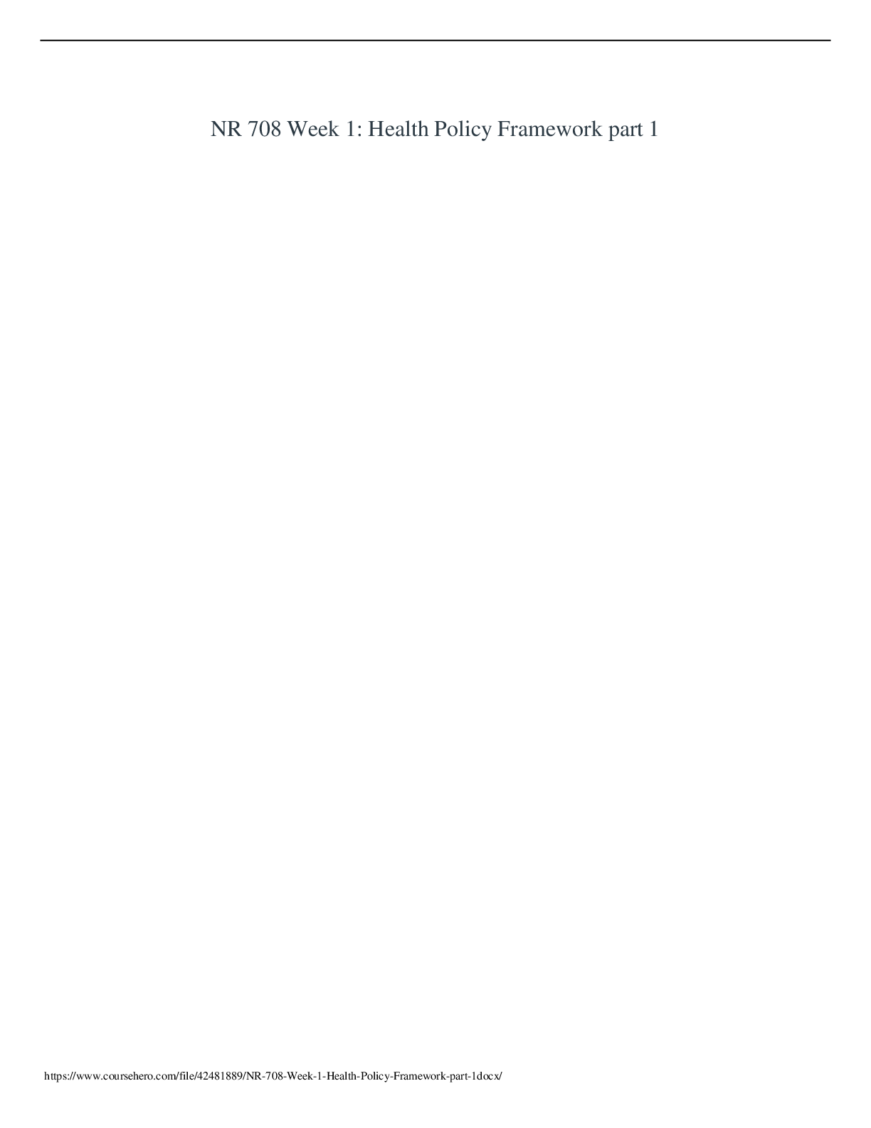 *NURSING > Solutions Guide > NR 708 Week 1 Health Policy Framework part 1