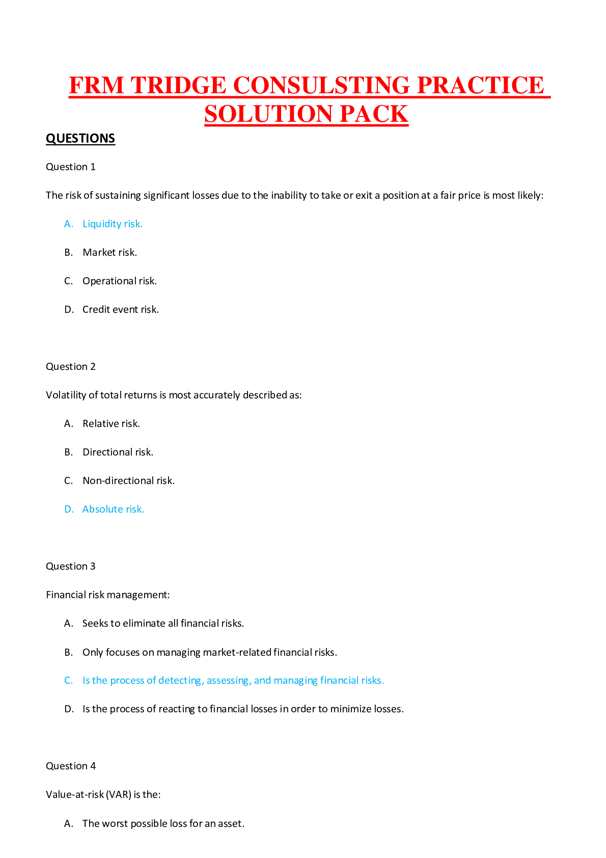 Finance > Solutions Guide > FRM TRIDGE CONSULSTING PRACTICE SOLUTION PACK COMPLETE LATEST AND NEWEST GUIDE|RATED A+|100% VERIFIED|