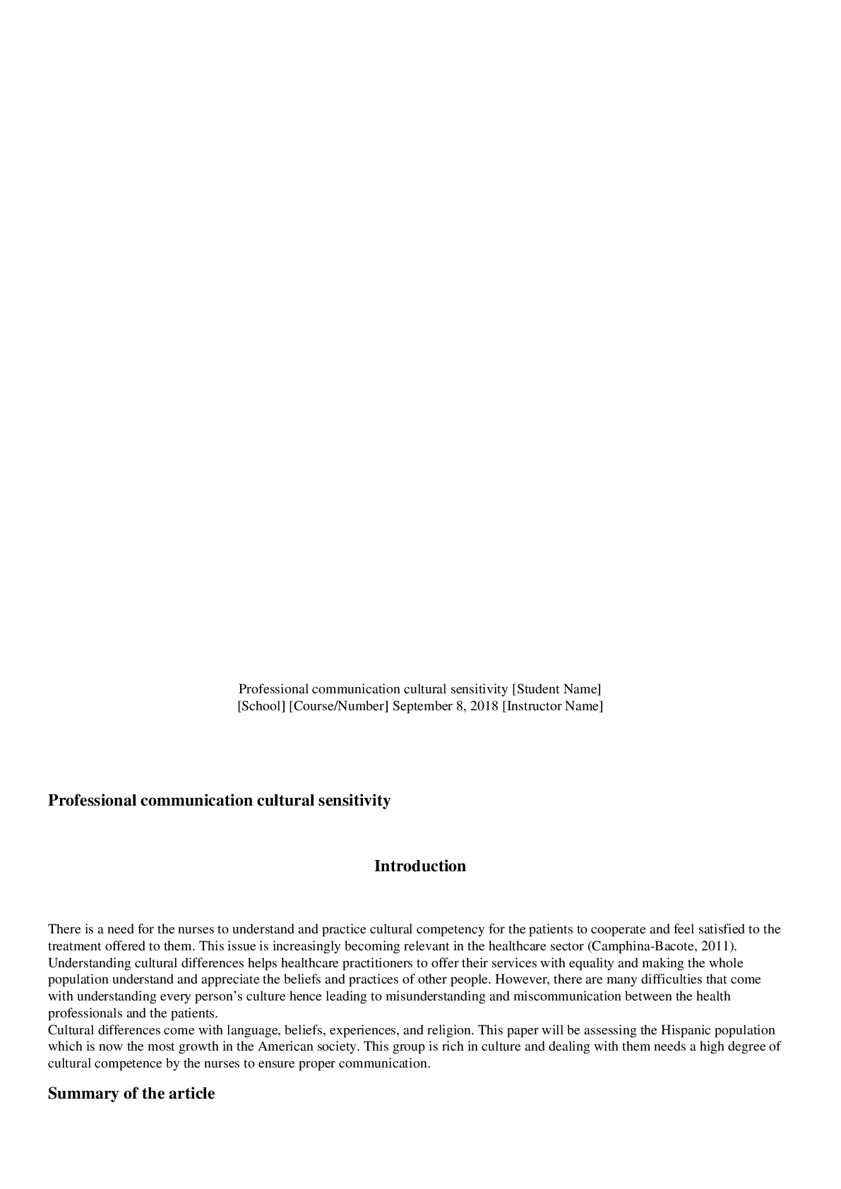 *NURSING > Solutions Guide > NUR 502 Week 2 - Professional Communication - Cultural Sensitivity
