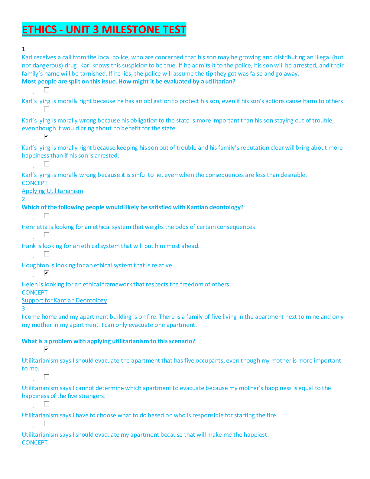 *NURSING > Solutions Guide > Sophia Unit 1, 2, 3, 4 and Final Intro to Ethics Milestone Test Combined Study Guides