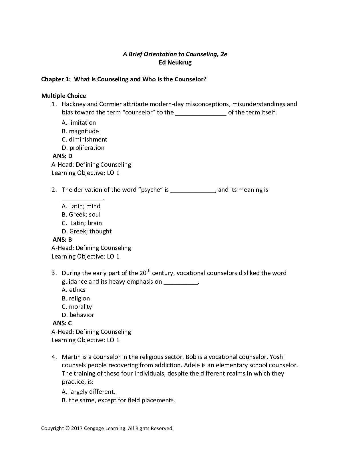Business > SOLUTIONS MANUAL > Test Bank For A Brief Orientation to Counseling Professional Identity, History, and Standards, 2nd Edition